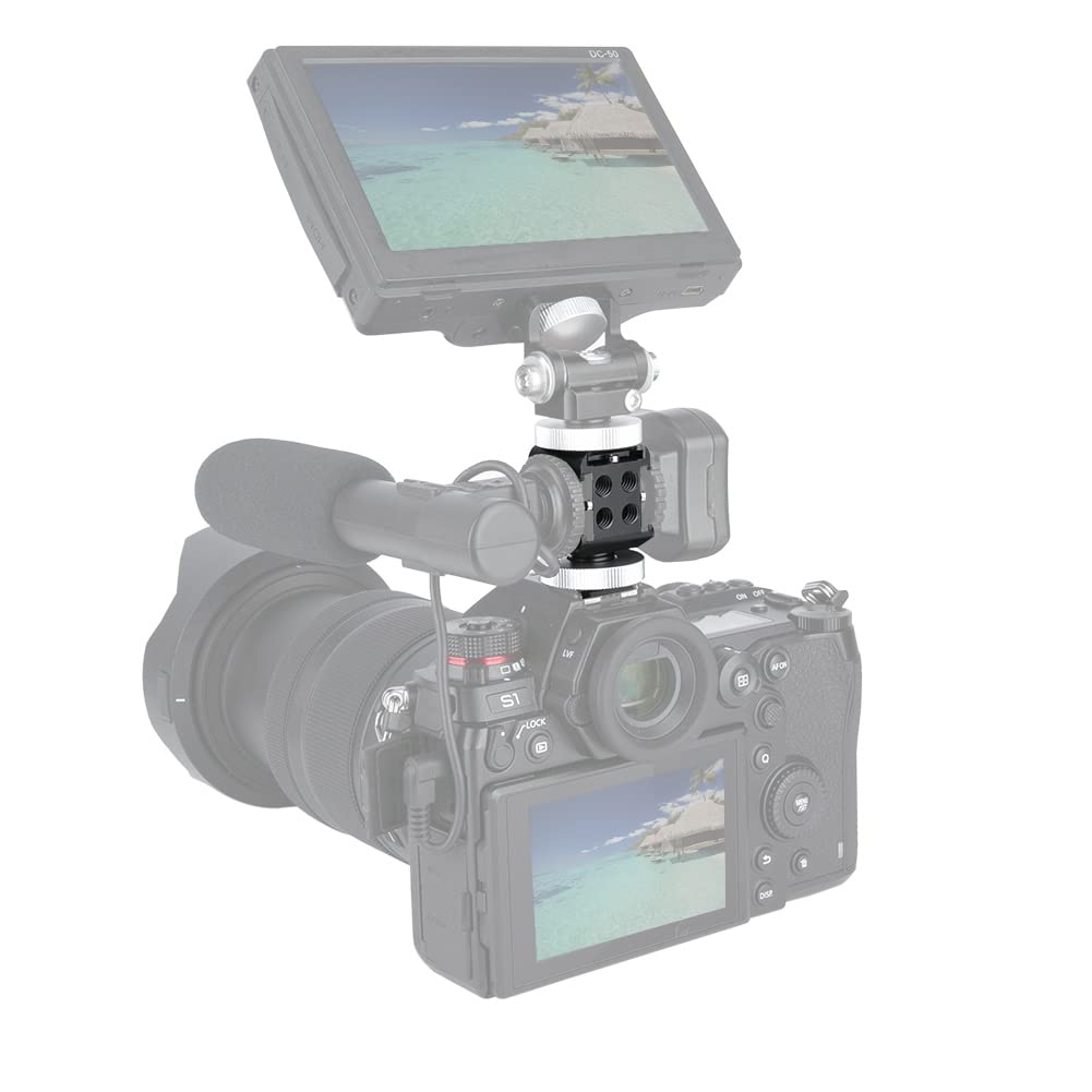 Updated Version Niceyrig Hot Shoe Mount 328 Is An Updated Version. The Differences Are: 1 - The New One Comes With 3 Cold Shoe Adapters ; 2 - The New One Comes With Many 1/4 Thread Holes ; 3 - The New One Comes With A Swivel Damping . Niceyrig 3-Sided Cold Shoe Extension Is Exclusively Designed For Attaching Accessories, Such As Monitor / Microphone / Led Light / Flash Light At A Time. Equipped With A Cold Shoe Mount On Top Plus Left & Right Side, It Allows 360 Degree Swivel To Change Its Direction. Tighten Quickly By A Knurling Knob. Additionally, Built-In Enough 1/4-20 Threaded Holes On Front & Back Both Sides To Support Any Accessories With 1/4 Screws. Very Convenient For Directly Mount The Shoe Mount Adapter Onto Dslr Camera And Cage Rigs! Multi-Function Yet Made Of Sturdy Aluminium Alloy, A Super Delicate And Helpful Camera Gadget For Vlog Dv Video Shooting ! Product Dimensions: 42X30X30 Mm Product Weight: 1.5 Oz Material: Aluminum Alloy What You Get:1 X Hot Shoe Mount1 X Hex Spanner