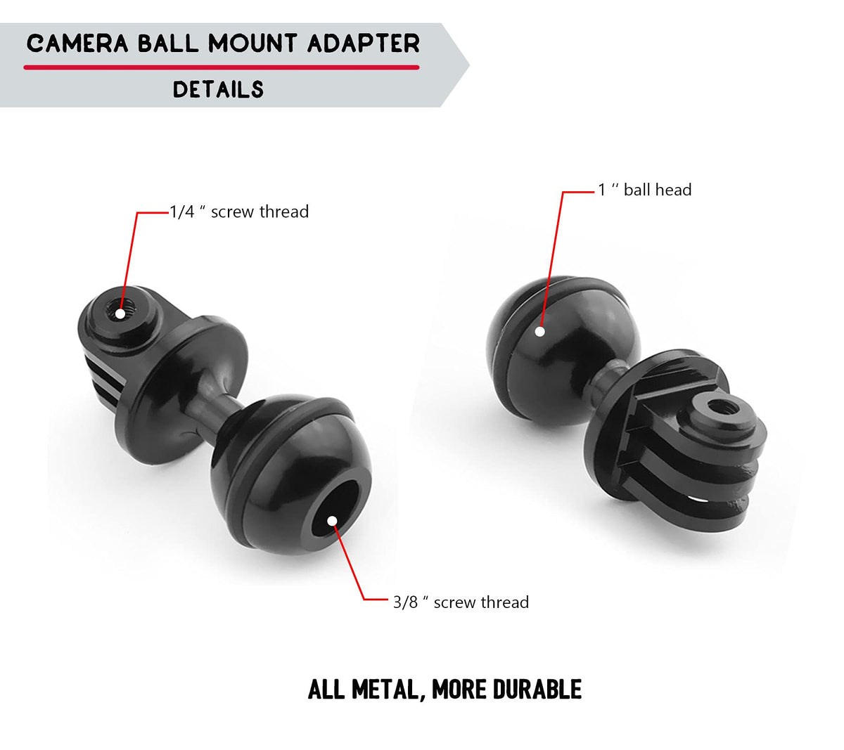Niewalda Ball Mount Adapter,Compatible With Ram Ball Head Mounts Compatible Gopro Series/Akaso/Dji/Osmo/Sjcam Sports Camera,Aluminum Alloy Ball Action Camera Bracket(Black)