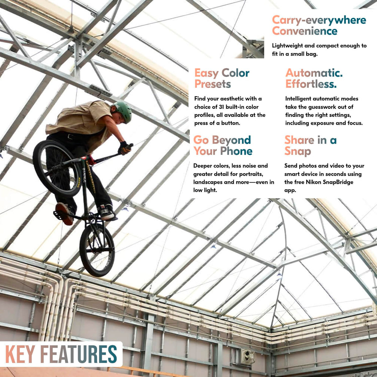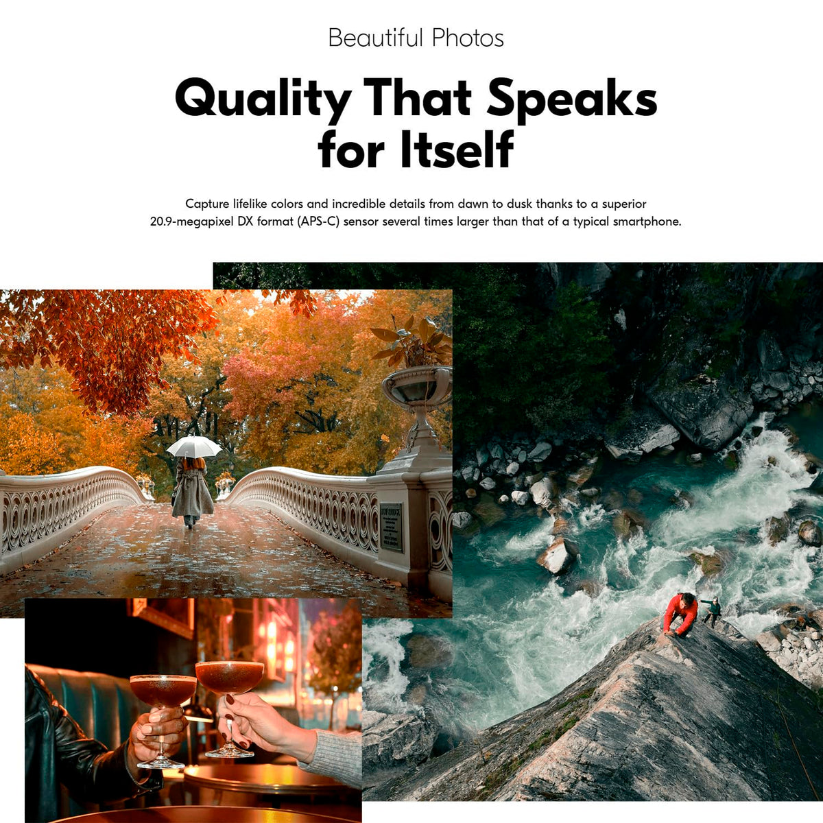 Mirrorless Camera Body With Lens Sharp, Lightweight, Optically Stabilized Lens 20.9-Megapixel Dx-Format (Aps-C Size) Lightweight And Compact Enough To Fit In A Small Bag 31 Built-In Presets Bird And Airplane Modes For Greater Autofocus Accuracy 120P Slow-Motion In Full Hd Built-In Electronic Vr