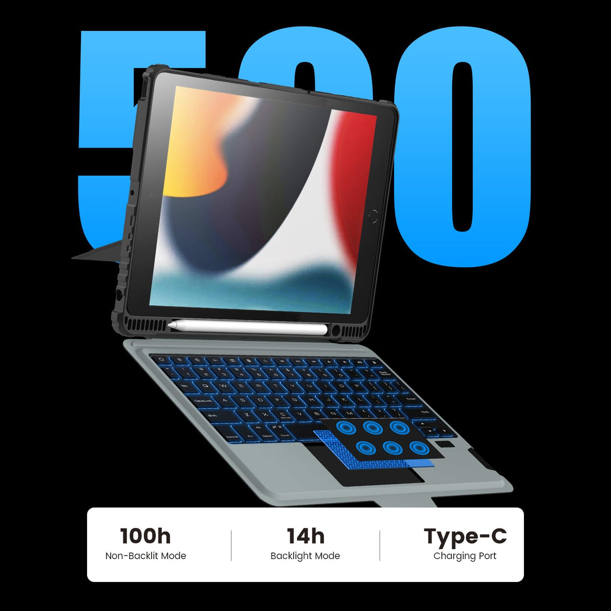 Nillkin Ipad 9Th Generation Keyboard Case With Backlight Detachable Keyboard 10.2'' Ipad With Kickstand Pencil Holder, For Ipad 8Th Generation 2020, 7Th Gen 2019/2021