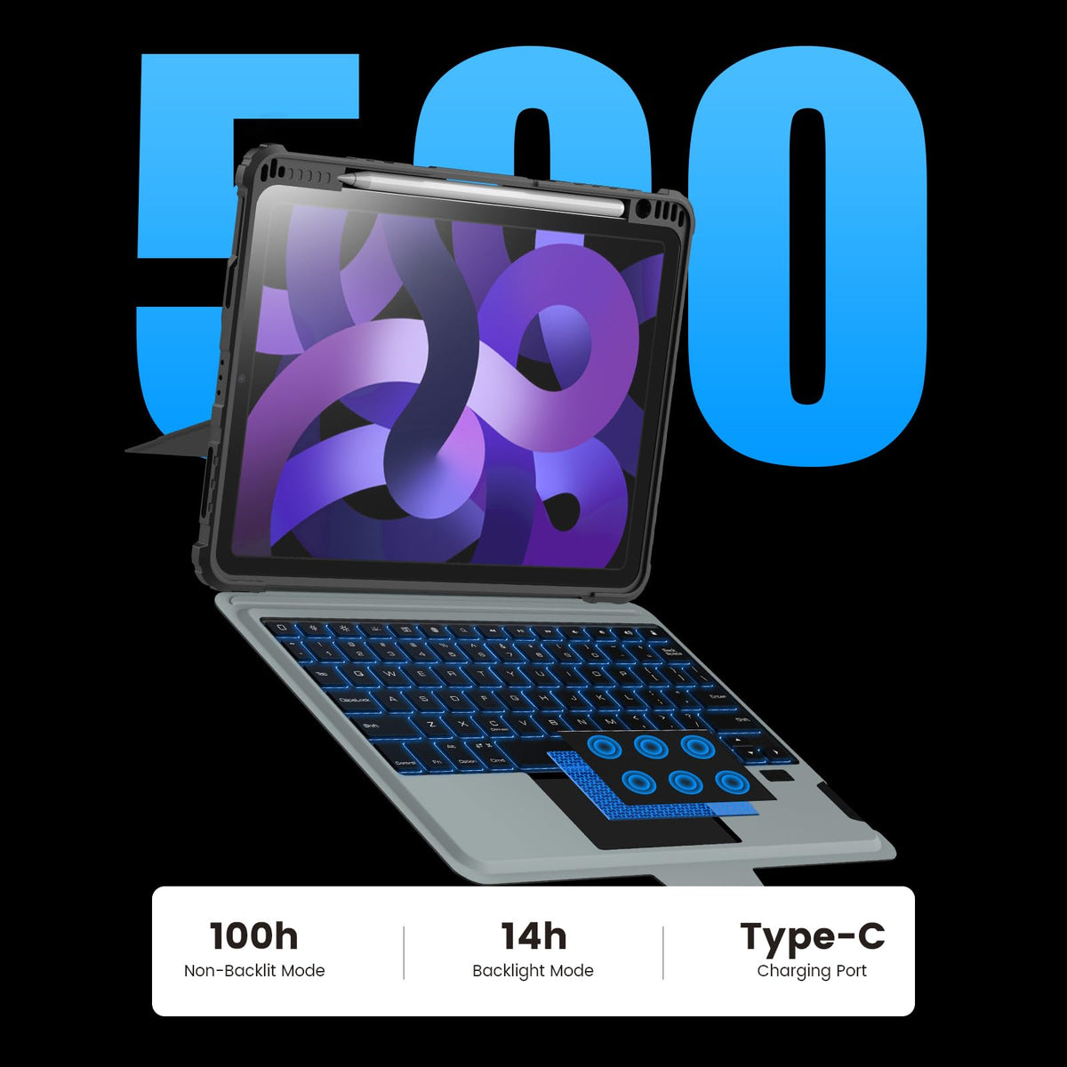 Nillkin Ipad Air 5Th Generation Case With Keyboard Backlight, Detachable Backlit Keyboard Laptop-Style Keys For Ipad Air 4Th Gen Kickstand Pencil Holder, Trackpad, Compatible With Ipad Air 10.9 2020,Ipad Pro 11 2021/2020/2022