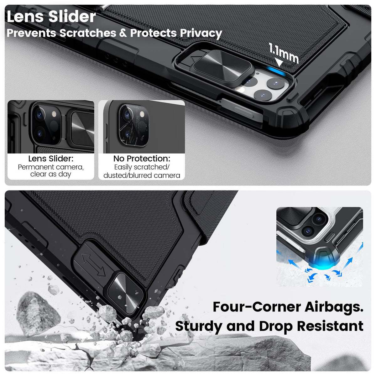 • Q: What materials are used in the Nillkin iPad Pro 12.9 Keyboard Case, and how does it protect my device? A: The case is made from durable polyurethane and includes a camera protection cover. It features a sturdy rugged design with bumpers that provide military-grade protection for your iPad.