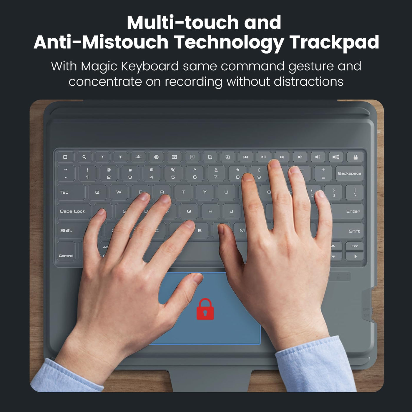 Q: How does the trackpad enhance productivity?A: The built-in high-sensitive trackpad is designed with anti-mistouch technology, allowing for seamless scrolling and swiping. This feature helps you navigate your iPad efficiently, reducing frustration and increasing your productivity.