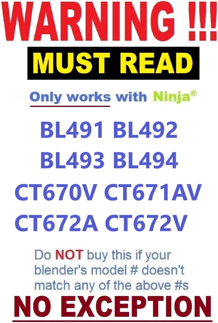 Important !!! Please Check All Pictures Carefully For Compatibility Before Buy. This Package Only Works With Ninja Bl491 Bl492 Bl493 Bl494 Ct670V Ct671Av Ct672A Ct672V Blender (For 40Oz Bowl). Do Not Buy If Your Blender'S Model # Doesn'T Match Any Of The Above Model #S. No Exception !!!!!!