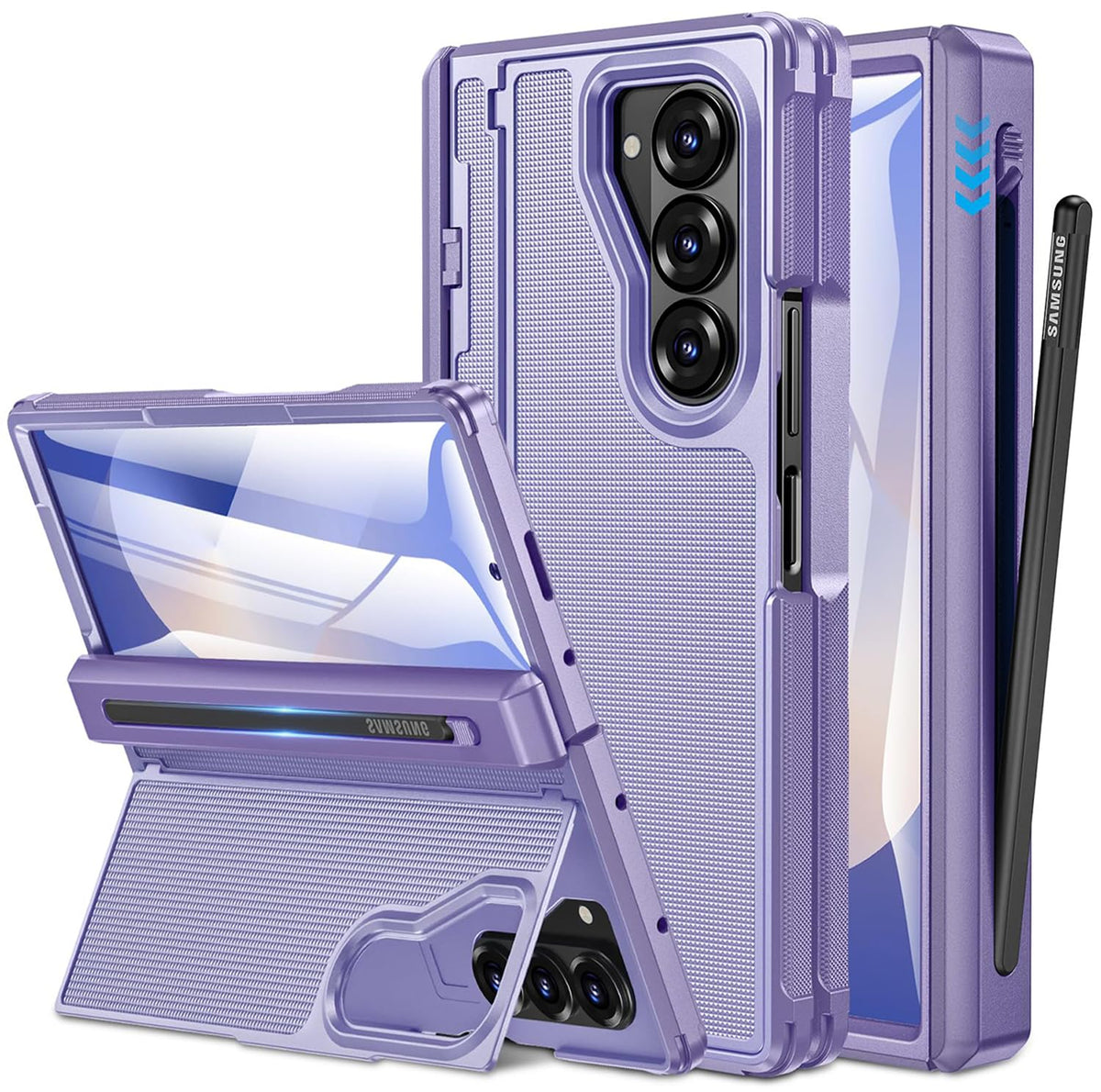 Ninki For Samsung Z Fold 7 Case With S Pen Holder & Hidden Kickstand, Built In Screen Protector Hinge Shockproof Hard Phone Cover For Samsung Galaxy Z Fold 7 Case With Slim S Pen Slot & Stand - Purple