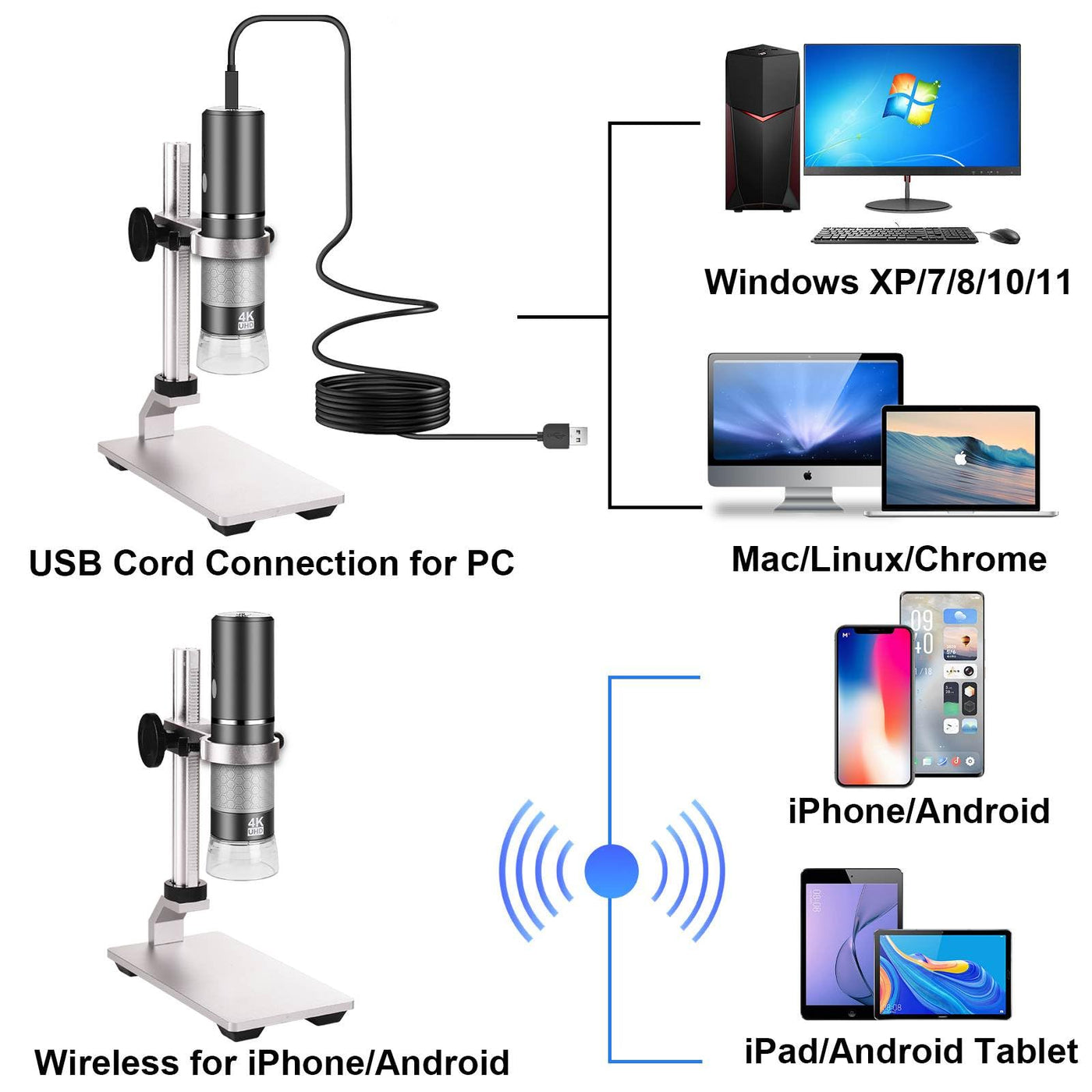 Ninyoon 4K Microscope With Professional Stand For Iphone Android Pc, 50-1000X Digital Usb Microscope Endoscope Hd Camera For All Cellphones Ipad Android Tablet Windows Mac Chrome Linux