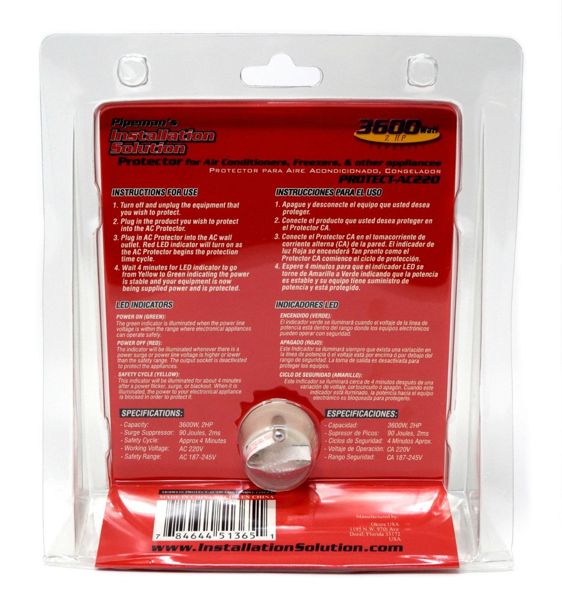 Nippon Surge Protector 220V 3600W For Air Conditioners & Freezers, White, Protect-Ac220