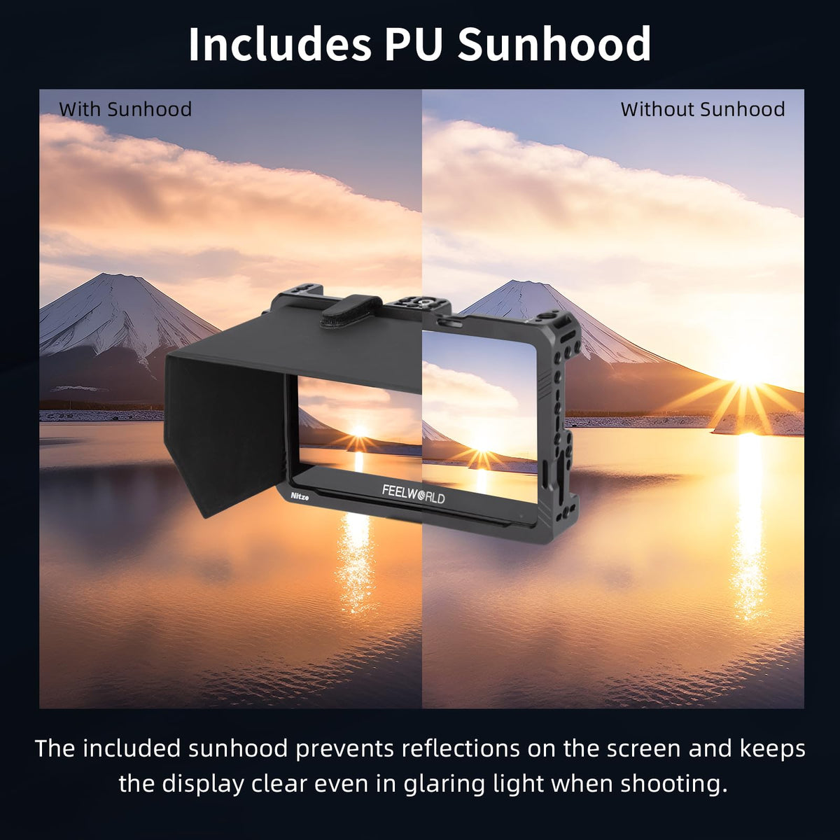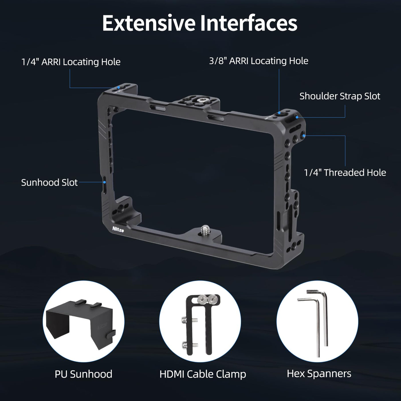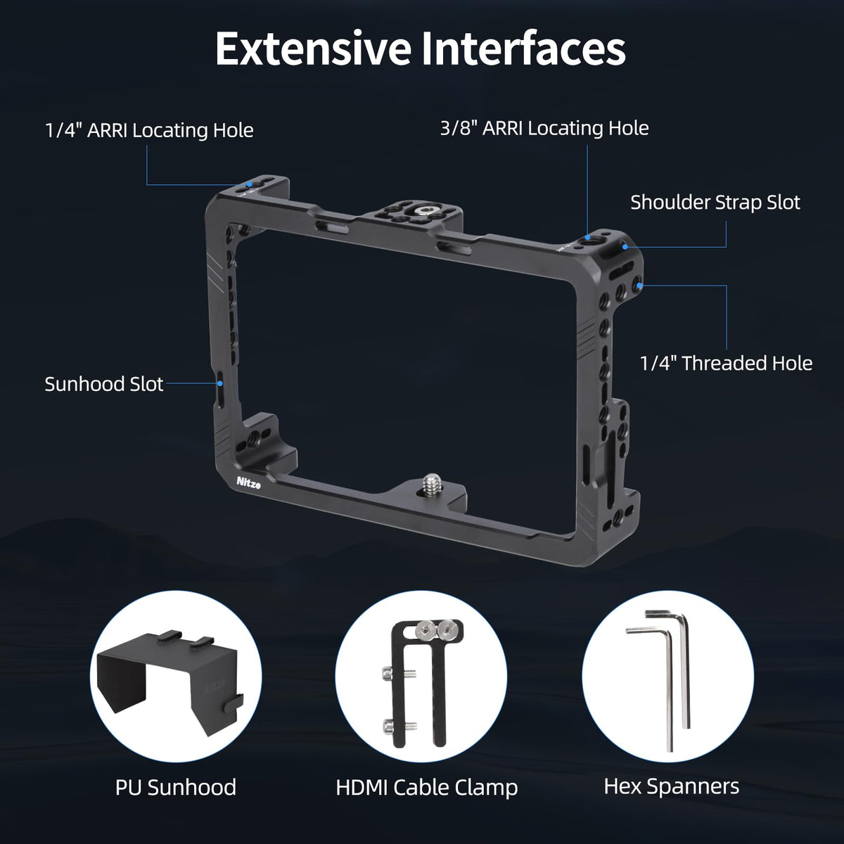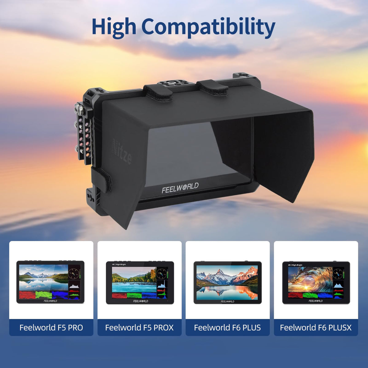 Nitze Monitor Cage Kit For Feelworld F6 Plusx / F6 Plus / F5 Pro / F5 Prox With Hdmi Cable Clamp And Sunhood - Jt-F05B