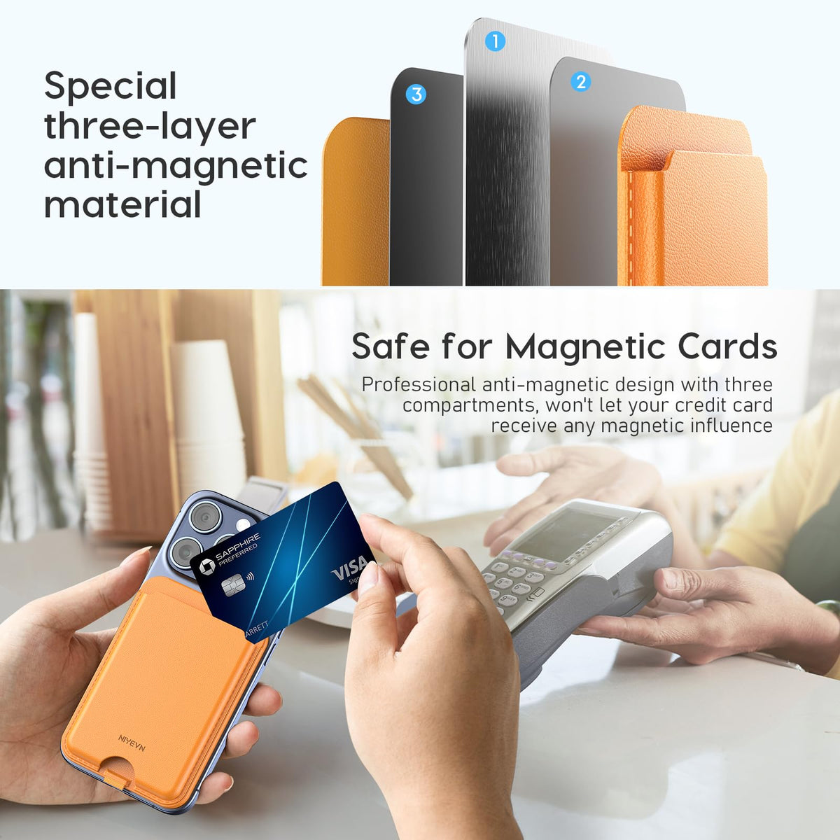 Niyevn Magnetic Cardholder Wallet For Iphone - Leather Cellphone Magnet Wallet With Adjustable 3 Card Holder Stand Compatible Wi