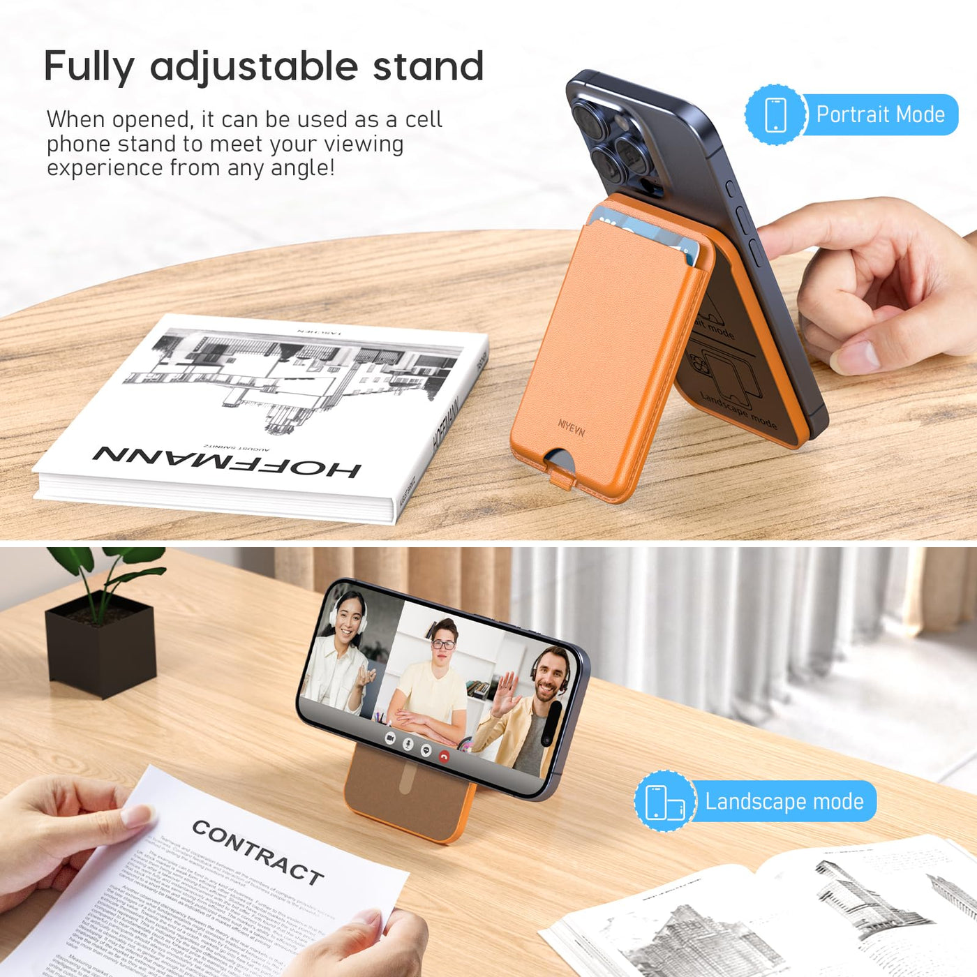 Versatile Phone Card Holder Stand: Elevate Your Mobile Experience To New Heights With Our Slim & Thin Phone 3 Card Holder. This Multi-Functional Accessory Offers Unparalleled Functionality Beneath Its Sleek Surface. Crafted With A Detachable & Secure Design, It Seamlessly Merges Cutting-Edge Technology With Elegant Vegan-Leather Aesthetics, Delivering The Epitome Of Style & Protection | Secure Magnetic Attachment: Designed With Mag-Safe Compatibility, Our Card Holder Boasts A Strong Grip, Ensuring A Firm Connection To Your Phone. Compatible With The Latest Iphone Models, Including Iphone 12/13/14/15 All Series, 12/13/14/15 Plus & Pro Or Pro Max, You Can Rely On This Card Holder To Stay Securely In Place | Unrivaled Convenience & Design: Our Card Holder Features A Metallic Mesh Lining That Provides Degaussing Protection, Safeguarding Your Id, Cash, And More From Demagnetization. Your Money And Cards Remain Readable & Usable For The Long Haul. Discover The Convenience Of An Adjustable Kickstand, Offering Customizable Viewing Angles Between 15
