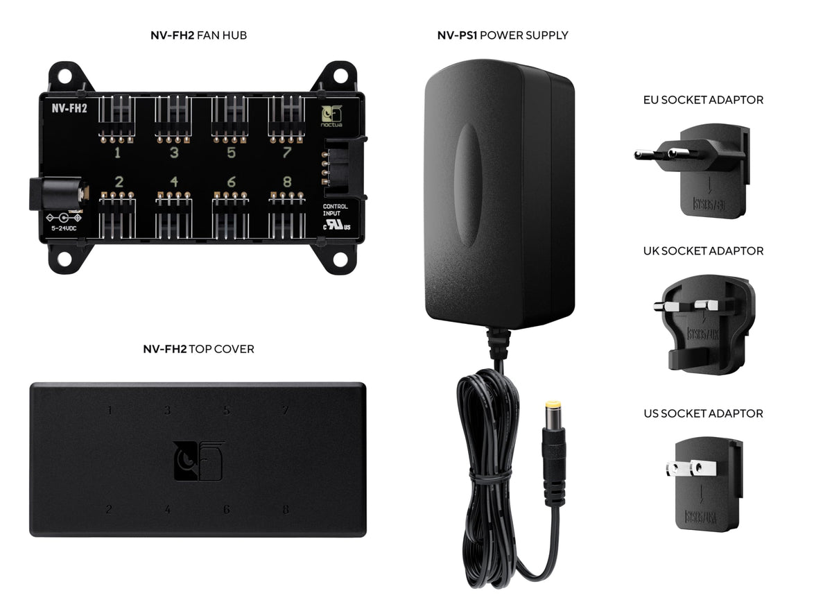 Combining The Nv-Fh2 8 Channel Pwm Fan Hub With The Nv-Ps1 230/115V 24W Power Supply, The Nv-Sph1 Powered Hub Set Is The Ideal Solution For Powering Up To Eight 12V Fans Off The Mains For Home, Office Or Multi-Purpose Ventilation Applications. For Stepless Speed Control Of Pwm Fans, The Optional Na-Fc1 Controller Can Be Connected To The 4-Pin Input Of The Nv-Fh2, And If More Than Eight Fans Are Required, Additional Nv-Fh2 Hubs Can Be Daisy-Chained. Both The Nv-Fh2 And The Nv-Ps1 Carry Ce, Ukca And Ul Certifications, Are Fully Compliant With All Applicable Safety Standards And Come With Noctuas 6-Year Manufacturers Warranty. In Short, The Nv-Sph1 Is A Complete Premium Set For Powering Multiple 12V Fans From Wall Outlets And Can Be Easily Expanded With The Optional Na-Fc1 Controller As Well As Additional Nv-Fh2 Boards.