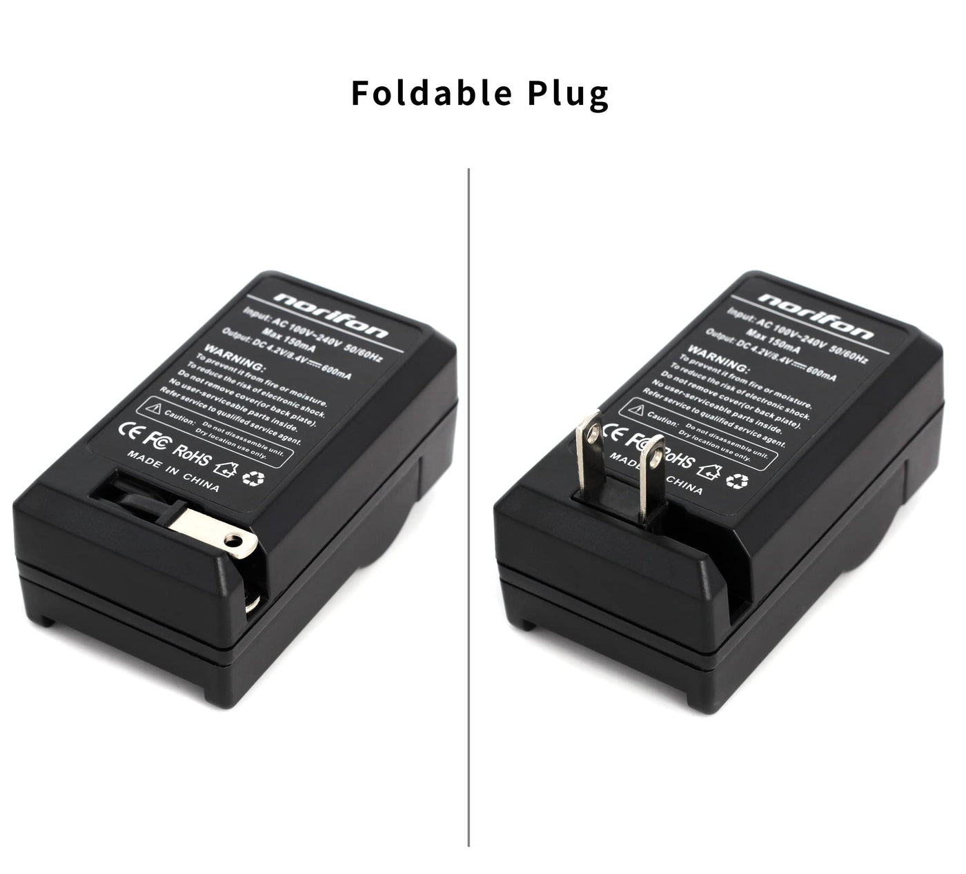 Q: Is the Norifon EN-EL10 Charger portable for travel?A: Yes, the charger is designed with a foldable plug, making it compact and easy to carry, perfect for travel and saving space in your bag.