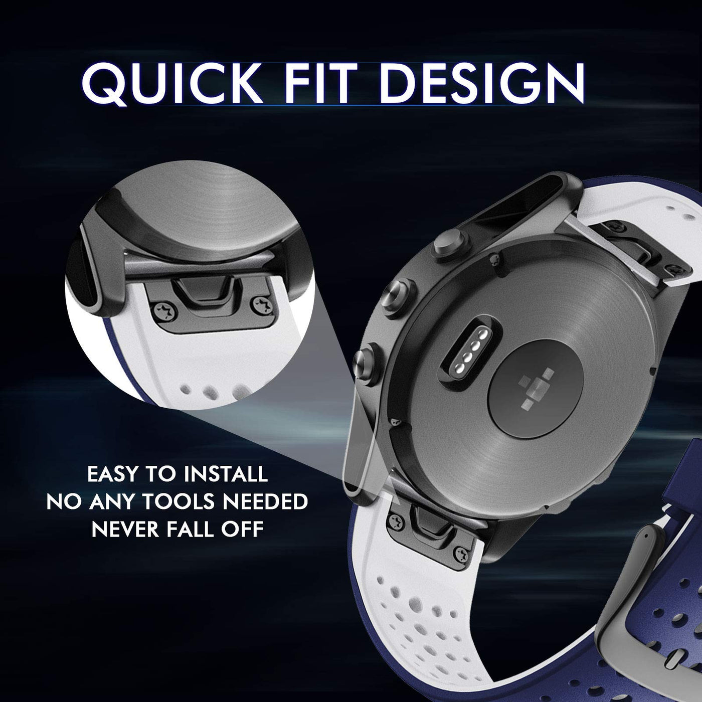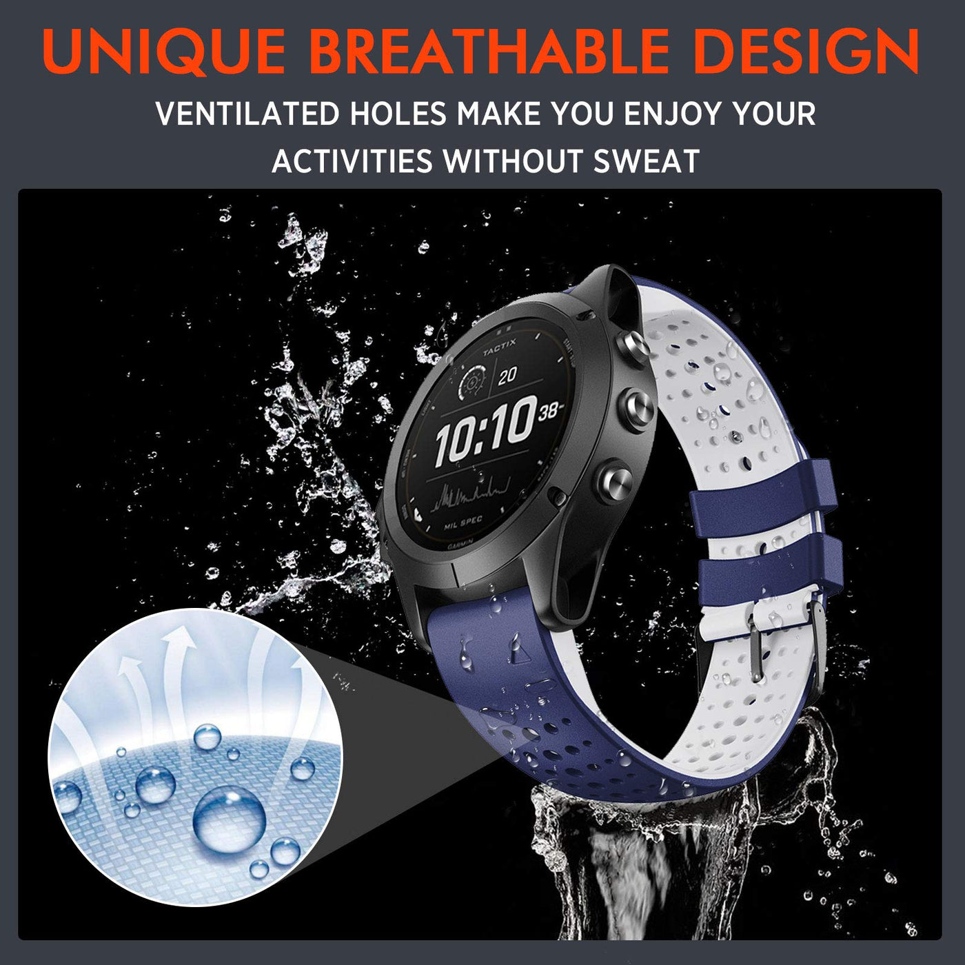 [Compatible Models] It Is Compatible With Garmin Fenix 7, Fenix 7 Sapphire, Fenix 7 Pro, Fenix 6, Fenix 6 Solar, Fenix 6 Pro, Fenix 5, Fenix 5 Plus, Forerunner 965, Forerunner 955, Forerunner 945, Forerunner 935, Forerunner 745, Approach S60, Approach S62, Approach S70-47Mm, Quatix 5, Quatix 6, Quatix 7, Instinct (Gen 1&2), Epix (Gen 1&2), Epix Pro 47Mm, Marq (Gen 1&2). | [Breathable Design] Air Holes Design Gives More Choice To Adjust The Replacement Band, Makes Your Band More Lightweight And Makes Your Wrist Skin Breathe Freely,Which Is Good For Perspiration And Suitable For Various Kinds Of Sports Activities. | [Environmental Soft Band] It Is Made Of Environmental Silicone Material, Very Soft, No Peculiar Smell And Harmless, Which Makes You Feel Comfortable And Healthy. | [Cool Style] Don'T You Feel Its Outlook So Cool? It Is Very Suitable For Any Sports Activities And Outdoor Parties, Which Will Make You Outstanding And Cool. | [Great Service] If You Are Not Satisfied With Our Products, Please Do Not Hesitate To Contact With Us And We Will Try Out Best To Solve It For You! We Are Always Here For You!