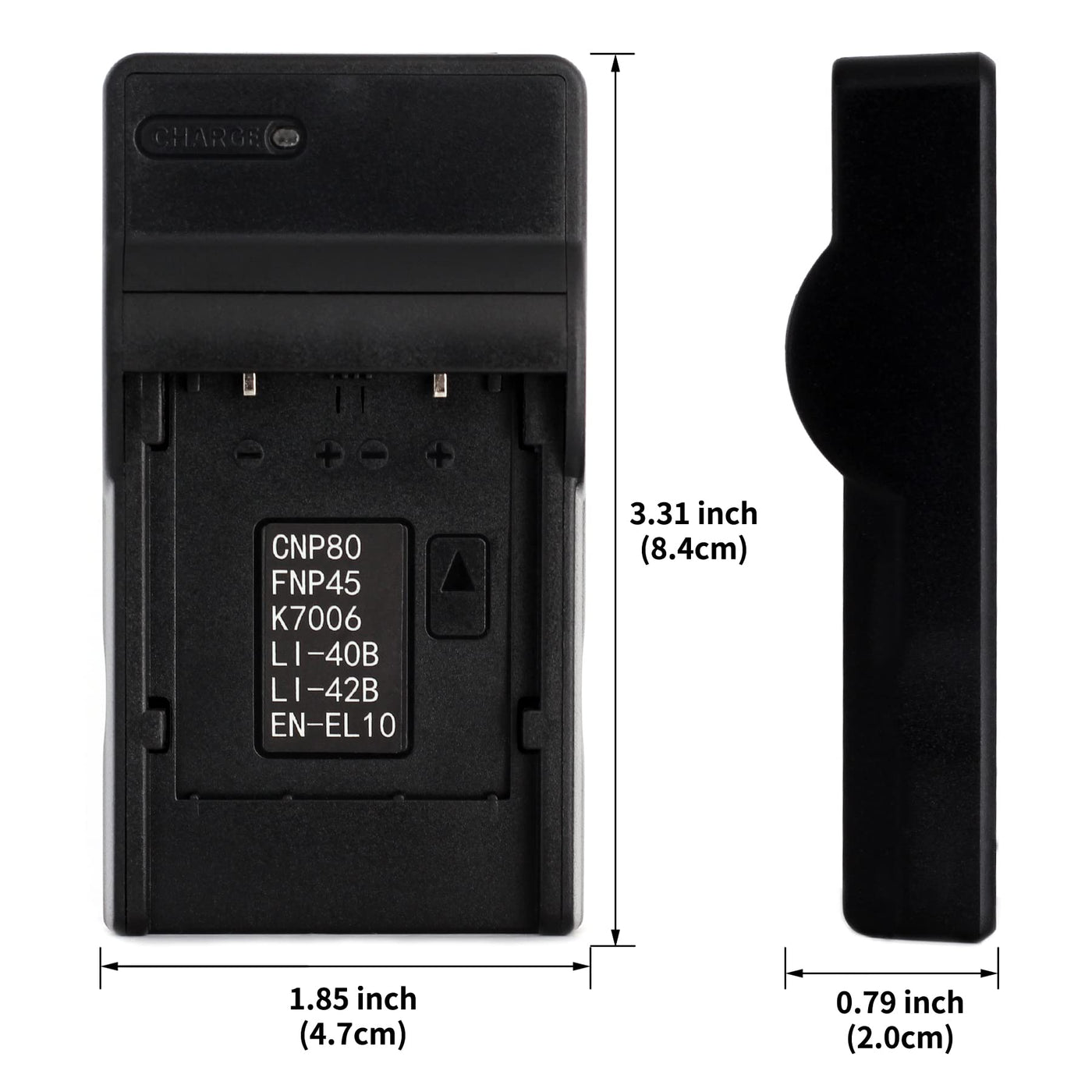 Q: How can I check the charging status of my battery?A: The NP-45 Charger allows you to know the charging status at any time, making it easy to monitor your battery's power level. Simply connect your battery to the charger, and you can easily see if it's charging or fully charged.