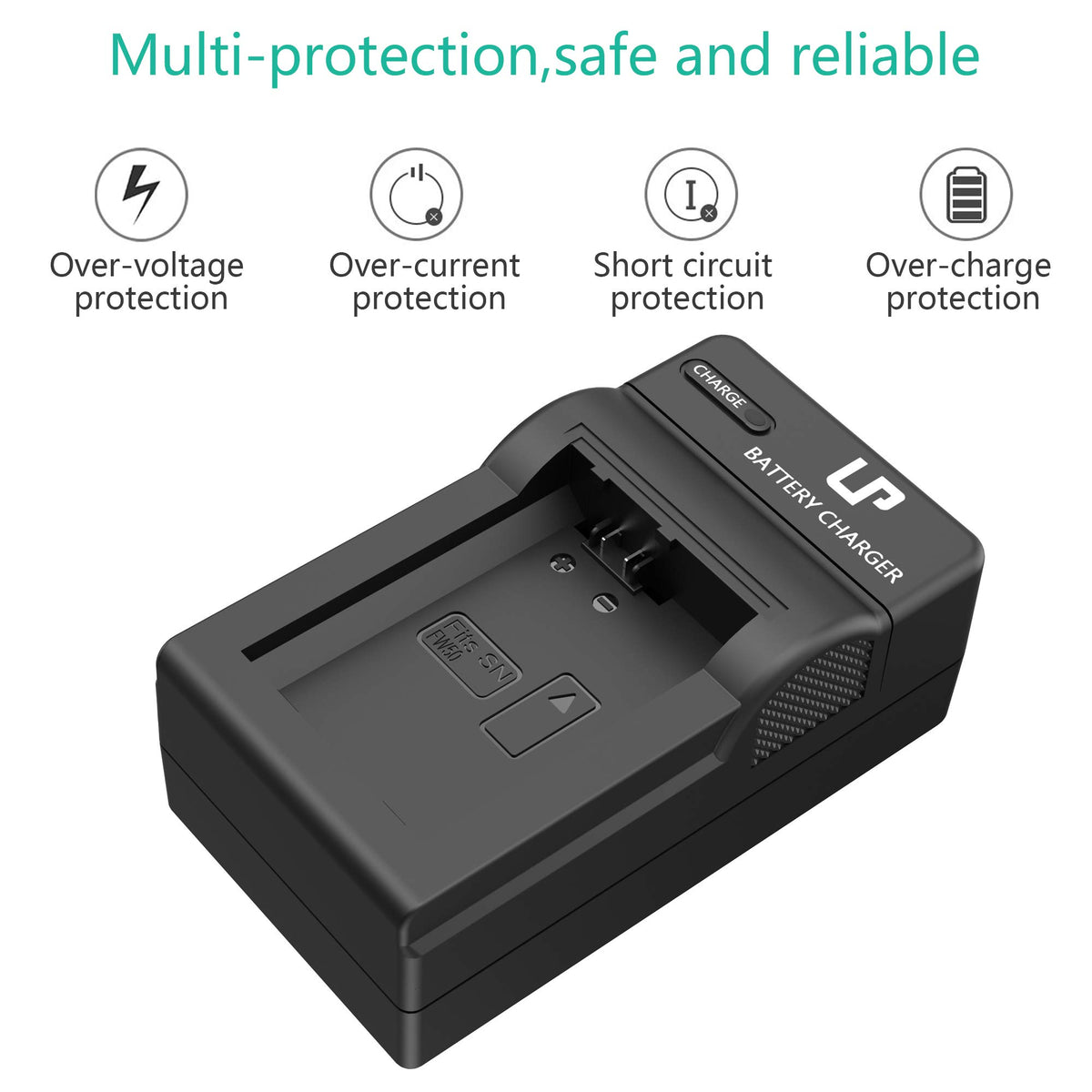 Lp Np-Fw50 Battery Charger:Safety And Reliable:Protection For Overcharge, Short Circuit And Electronic Shock With Ce, Rohs Certifications.100% Compatible:Lp Battery And Charger Are Tested By Manufacturer To Meet Or Exceed The Np-Fw50 Battery And Bc-Trw W Series Battery Charger.Smart Led Indicator: Shows The Status Of Battery. Green For Standby, Red For Charging.Portable:A Good Choice For Travel Or Other Indoor/Outdoor Activities.Compatible With:Sony Alpha A7 (Ilce-7)Sony Alpha A7 Ii (Ilce-7M2)Sony Alpha A7R (Ilce-7R)Sony Alpha A7R Ii (Ilce-7Rm2)Sony Alpha A7S (Ilce-7S)Sony Alpha A7S Ii (Ilce-7Sm2)Sony Alpha A3000 (Ilce-3000)Sony Alpha A5000 (Ilce-5000)Sony Alpha A5100 (Ilce-5100)Sony Alpha A6000 (Ilce-6000)Sony Alpha A6300 (Ilce-6300)Sony Alpha A6500 (Ilce-6500)Sony Ilce-Qx1Sony Alpha Nex-3Sony Alpha Nex-3Nsony Alpha Nex-5Sony Alpha Nex-5Nsony Alpha Nex-5Rsony Alpha Nex-5Tsony Alpha Nex-6Sony Alpha Nex-7Sony Alpha Nex-C3Sony Alpha Nex-F3Sony Alpha Slt-A33Sony Alpha Slt-A35Sony Alpha Slt-A37Sony Alpha Slt-A55Vsony Dsc-Rx10Sony Dsc-Rx10M2 (Rx10 Ii)Sony Dsc-Rx10M3 (Rx10 Iii)Sony Dsc-Rx10M4 (Rx10 Iv)And More.Warm Tips:Package Contents: 1 * Lp Np-Fw50 Battery Charger