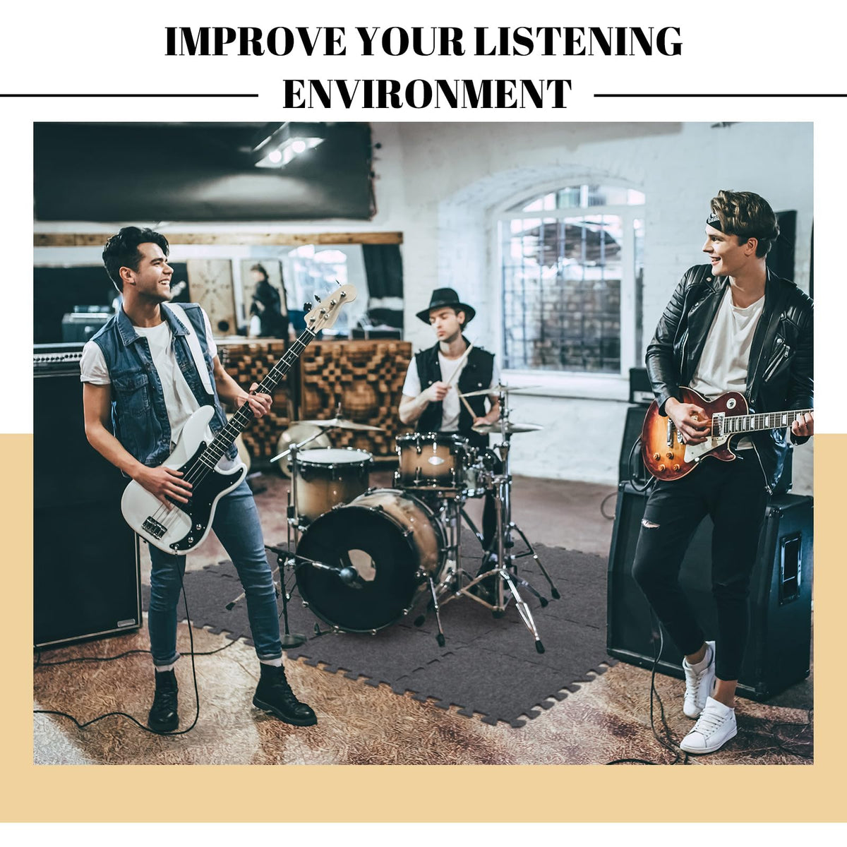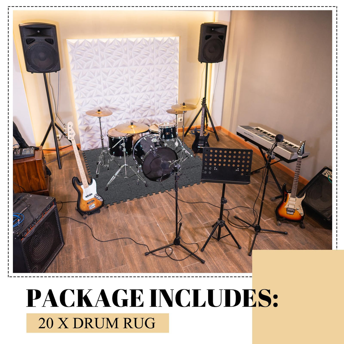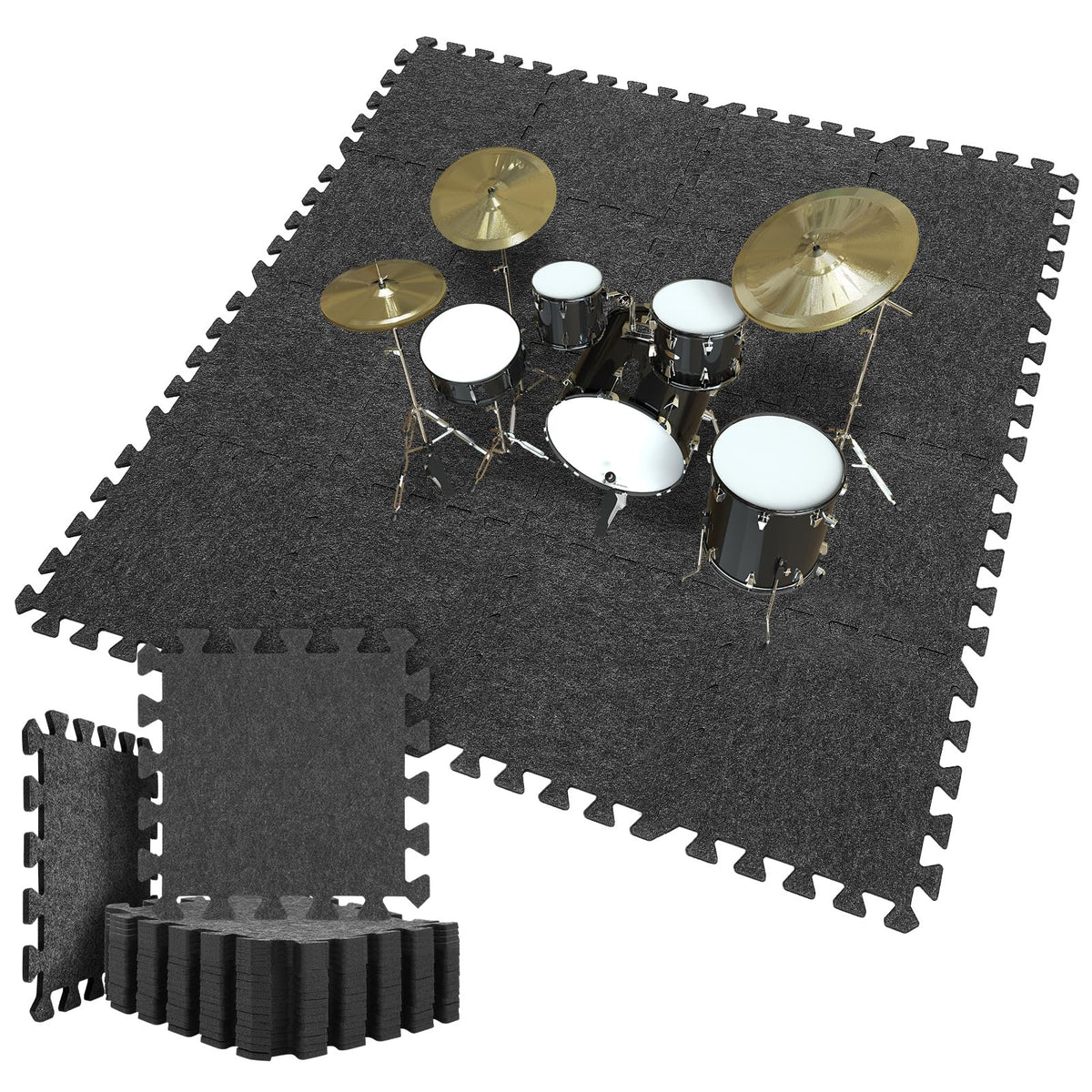Nuanchu 16 Pcs Thick Sound Absorbing Interlocking Floor Mats, 11.8 X 11.8 Inches High Density Piano Carpet Drum Rug Sound Absorb