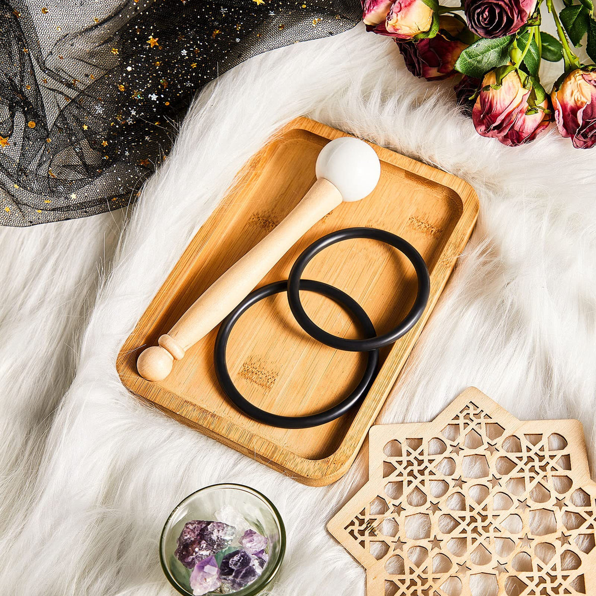 Nuanchu 4 Pcs Crystal Singing Bowl Mallet Bowl Striker And O Ring Set, Include 2 Rubber Head Wood Handle Mallet With 2 Rubber O