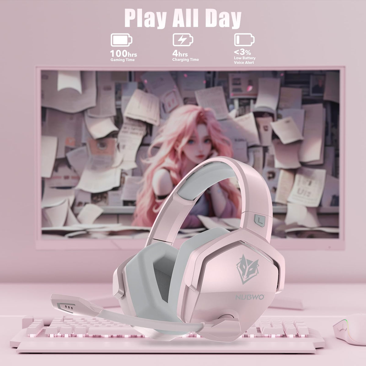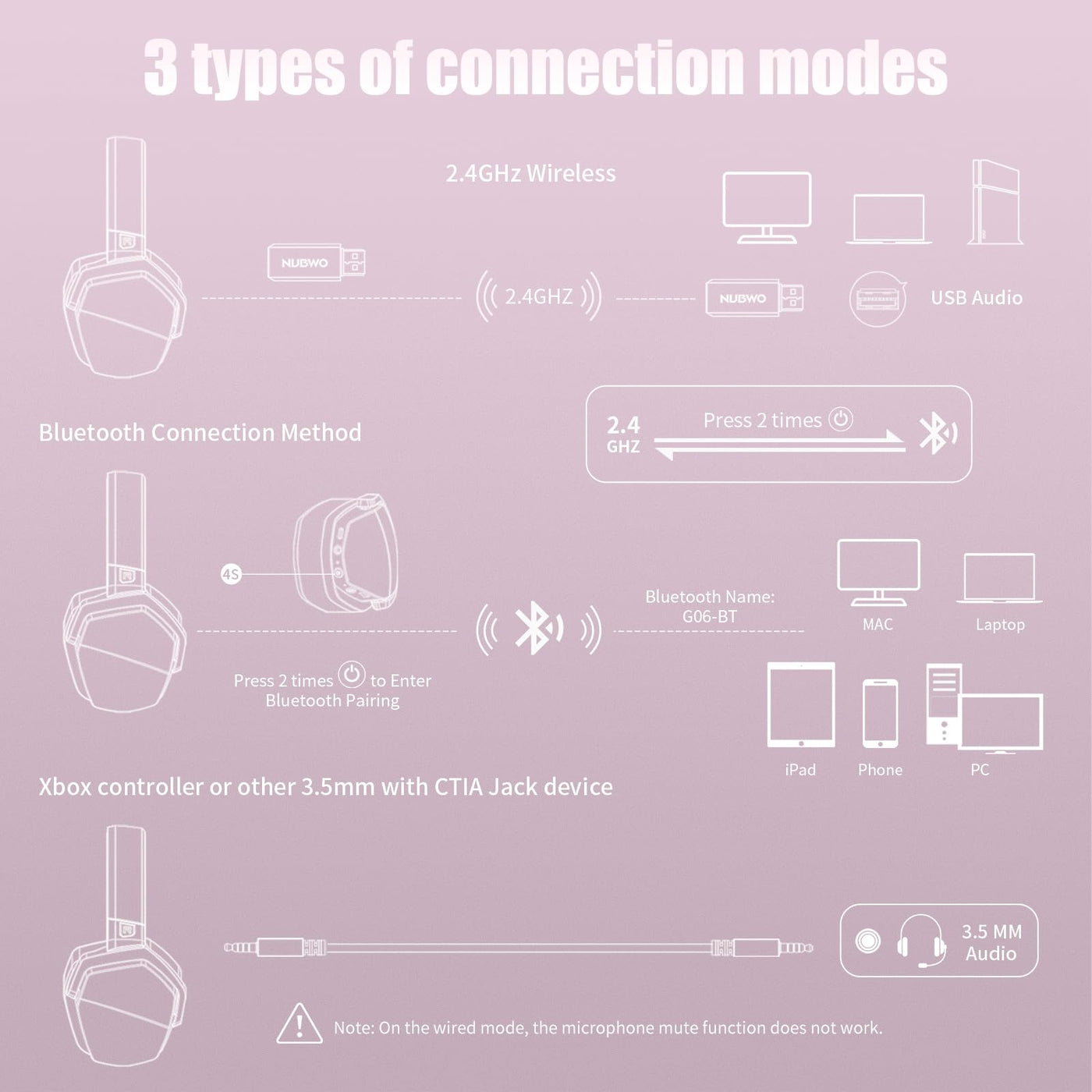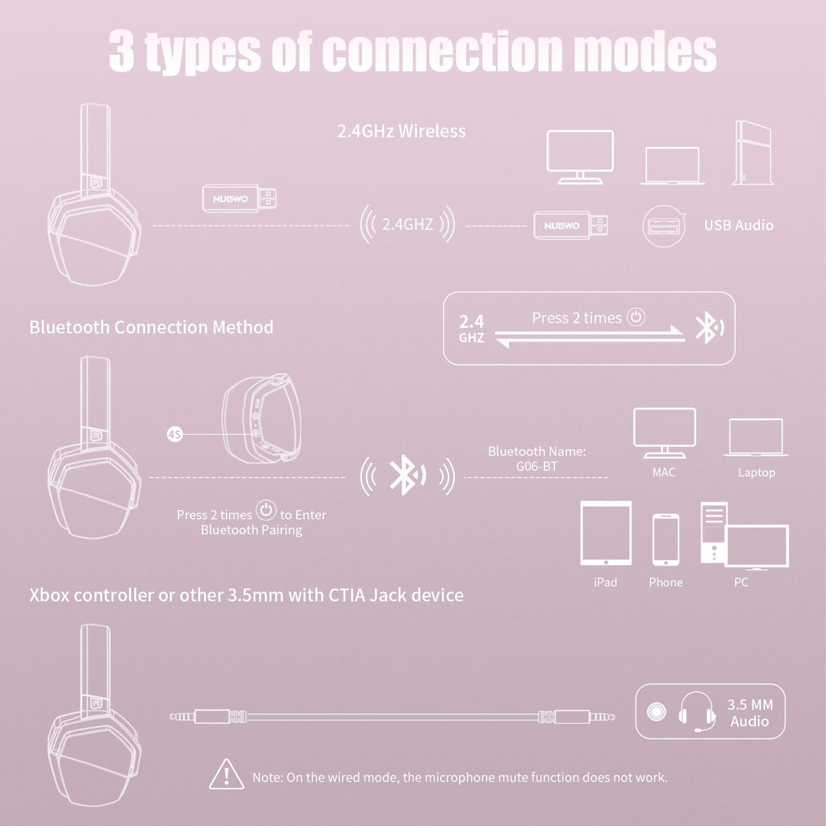Nubwo G06 Dual Wireless Gaming Headset With Mic For Ps5, Ps4, Pc, Mobile, Switch: 2.4Ghz Wireless + Bluetooth 100 Hr Battery