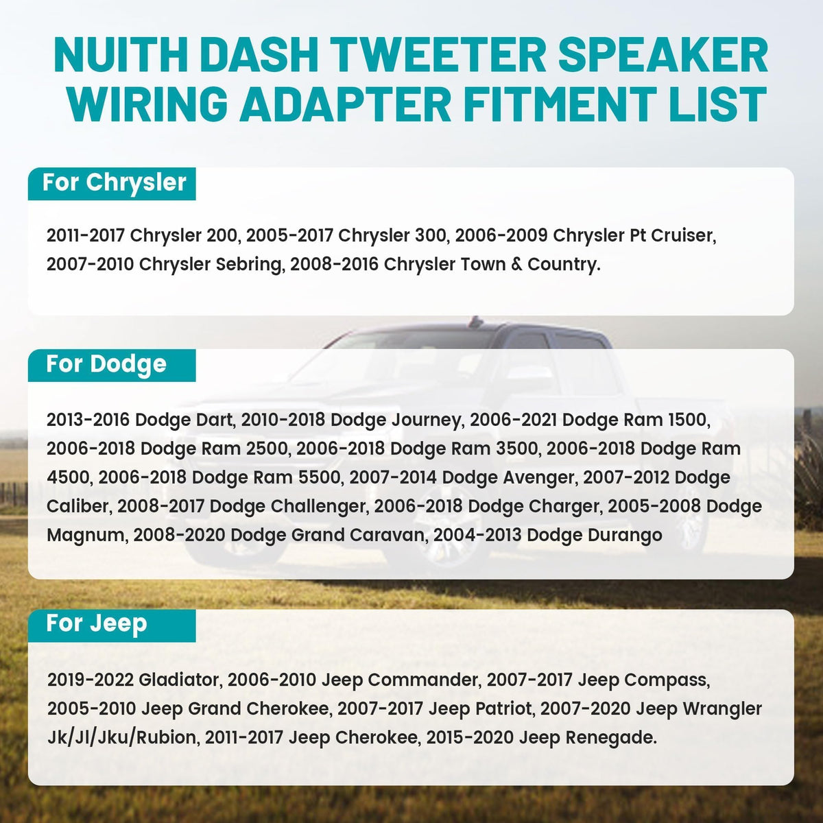 Nuith Front Dash Tweeters Speaker Harness For Select 2005 2022 Dodge/Jeep/Chrysler Aftermarket Dash Tweeters Audio Cable Connect