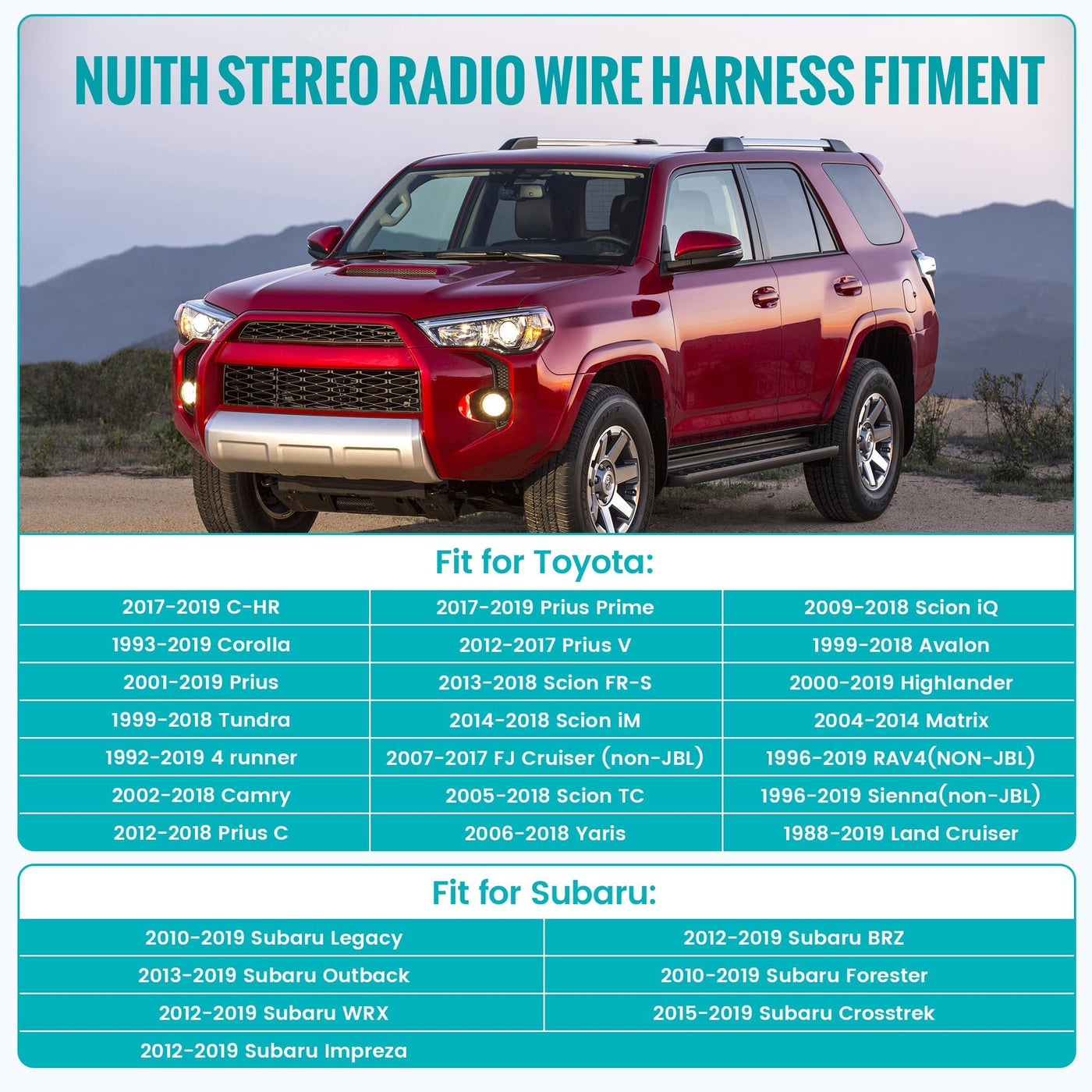 Nuith 71-1761 70-7061 Radio Wiring Harness For Toyota/Subaru Allows To Add An Aftermarket Radio Or An Amp To Your Factory Radio Using Existing Factory Wiring. No Cutting Or Splicing Needed, Made The Installation Quick And Easy.