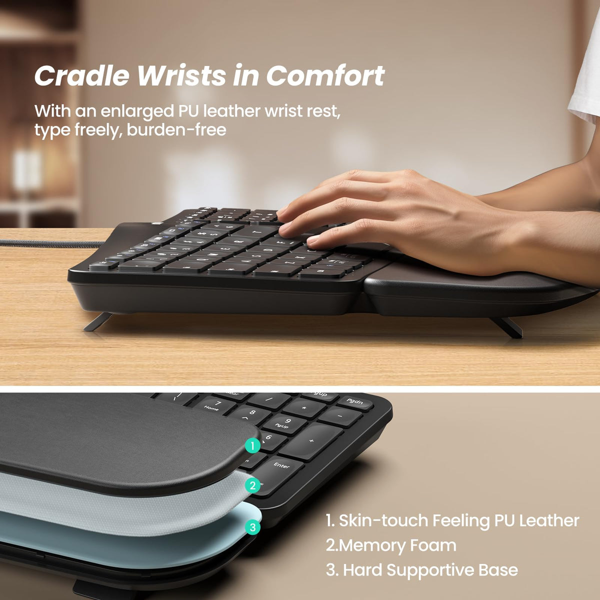 Nulea Rt05C Wired Ergonomic Keyboard, Split Keyboard With Cushioned Wrist Rest, Adjustable Tilt Legs, Plug And Play, Usb Corded, Compatible With Windows/Mac