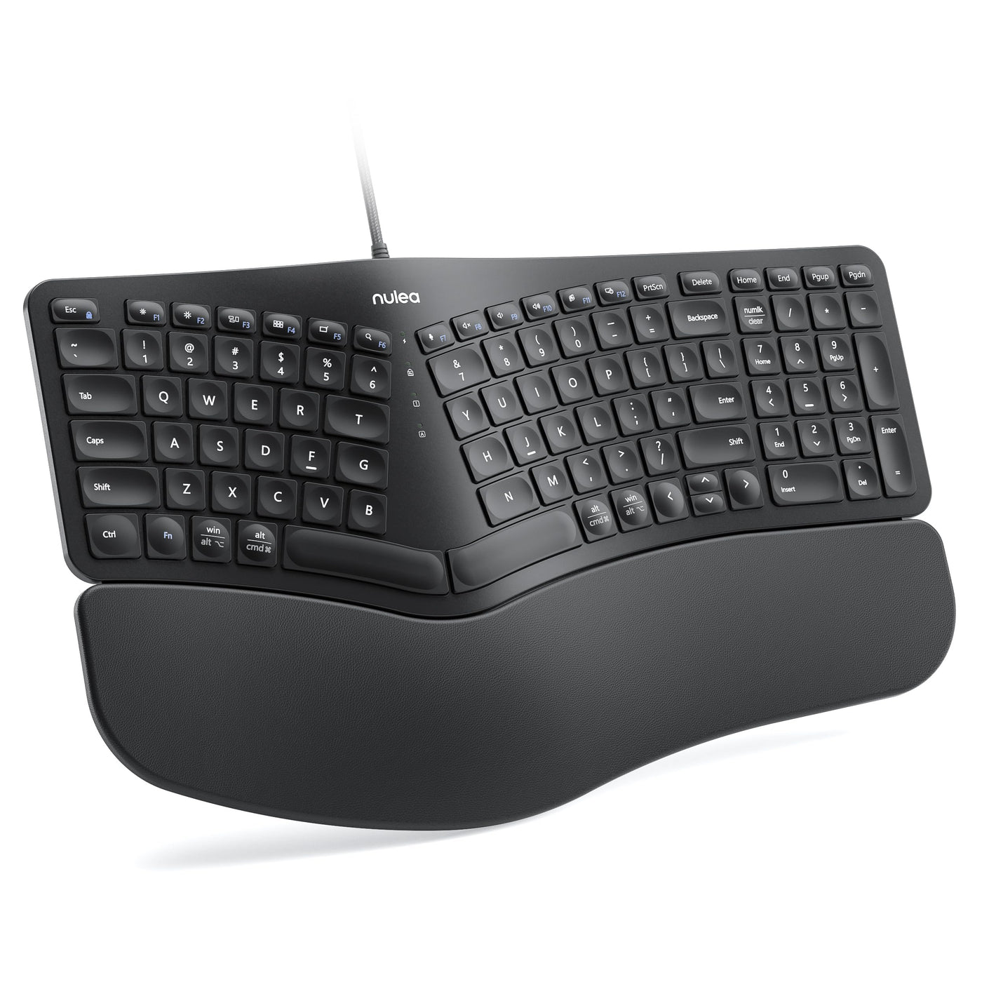 Nulea Rt05C Wired Ergonomic Keyboard, Split Keyboard With Cushioned Wrist Rest, Adjustable Tilt Legs, Plug And Play, Usb Corded,