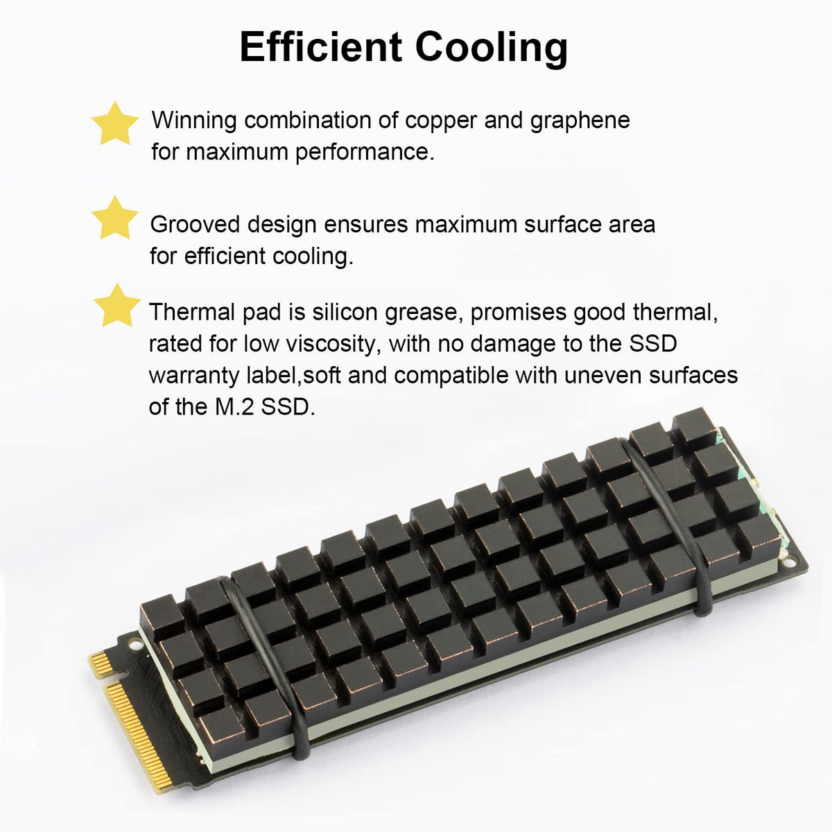 Nvme M.2 Heatsink Ssd Heatsink: Graphite Covered Pure Copper Heatsink Thermal Pad For 2280 Ngff M.2 Ssd Laptop Ps5 (70X20X2Mm)