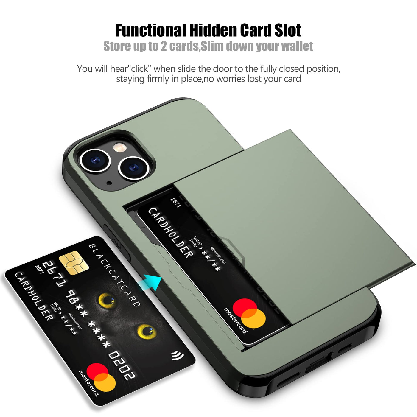 Nvollnoe Compatible With Iphone 15 Case With Card Holder Heavy Duty Protective Dual Layer Shockproof Hidden Card Slot Slim Walle