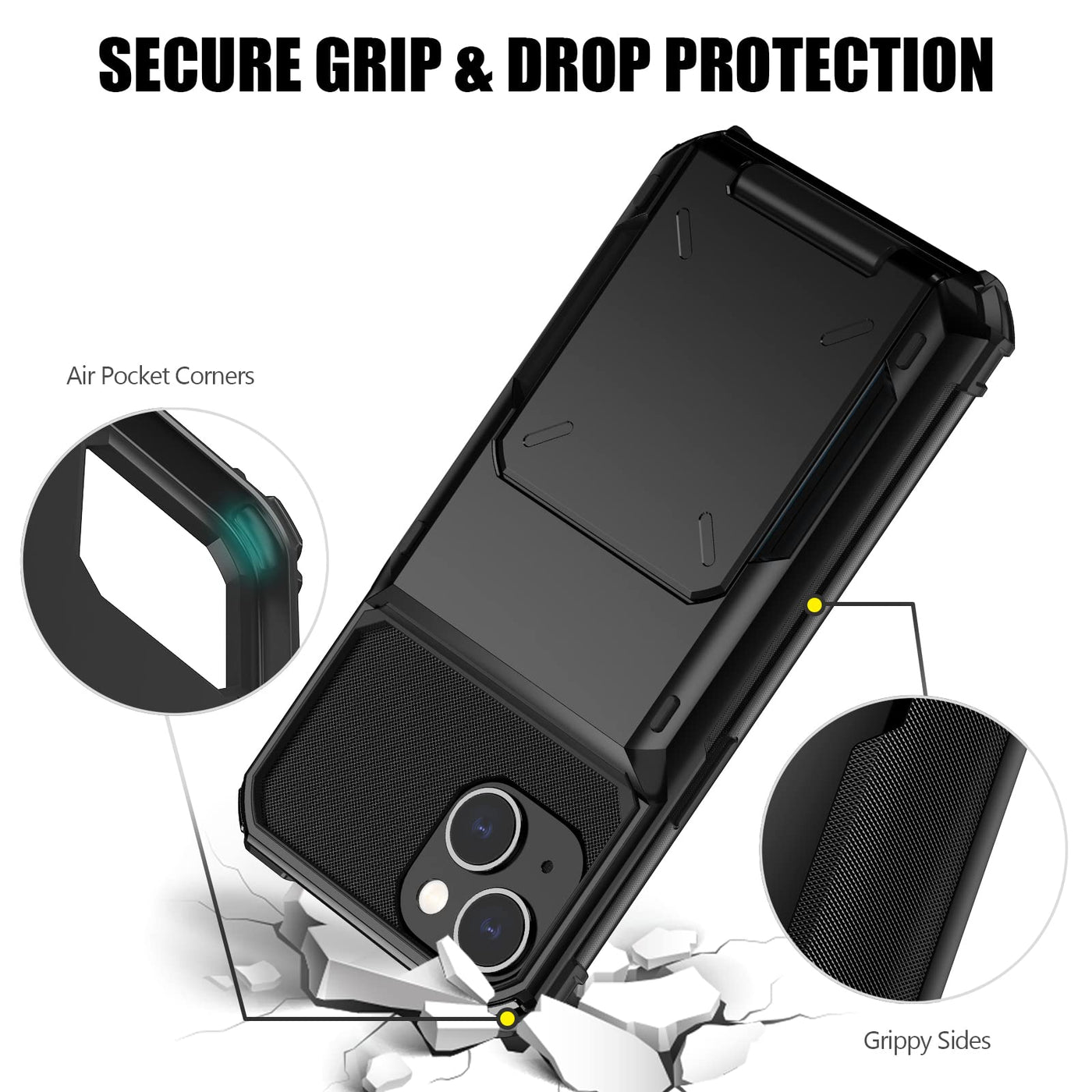 Nvollnoe Compatible With Iphone 15 Case With Card Holder[Store 5 Cards] Dual Layer Heavy Duty Shockproof Wallet Case With Hidden