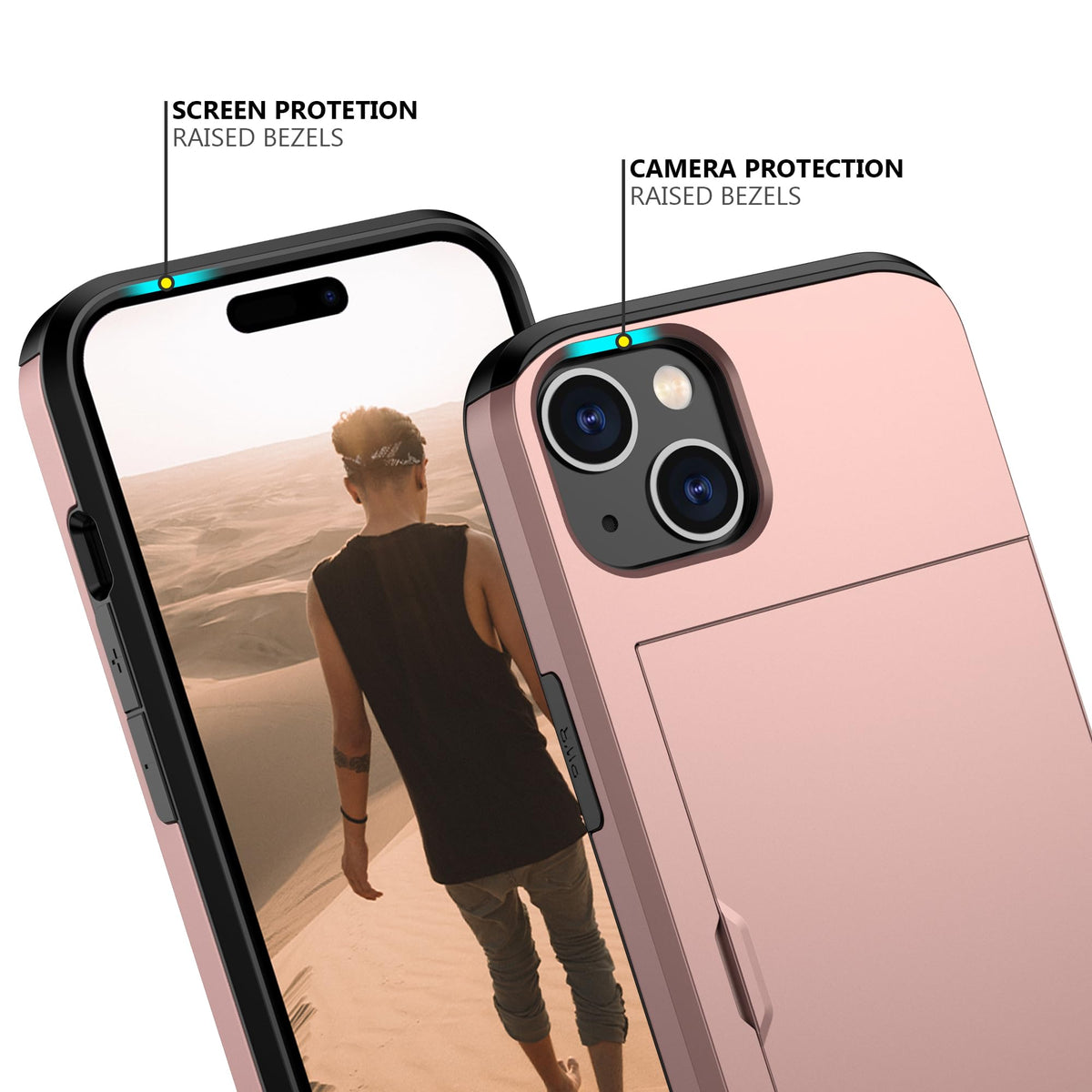Nvollnoe Compatible With Iphone 15 Plus Case With Card Holder Heavy Duty Protective Dual Layer Shockproof Hidden Card Slot Slim