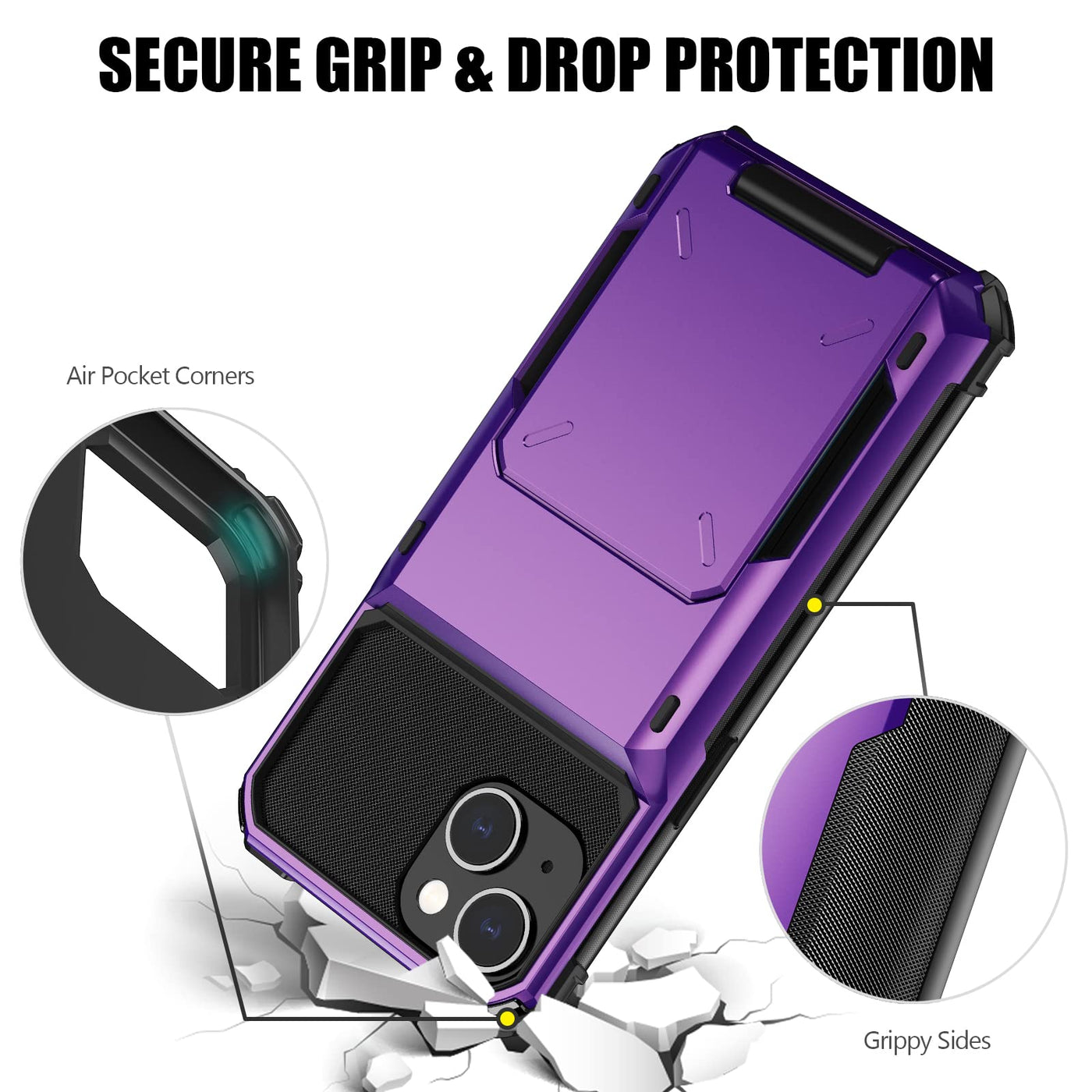 Nvollnoe For Iphone 14 Case With Card Holder[Store 5 Cards] Dual Layer Heavy Duty Shockproof Iphone 14 Wallet Case With Hidden C