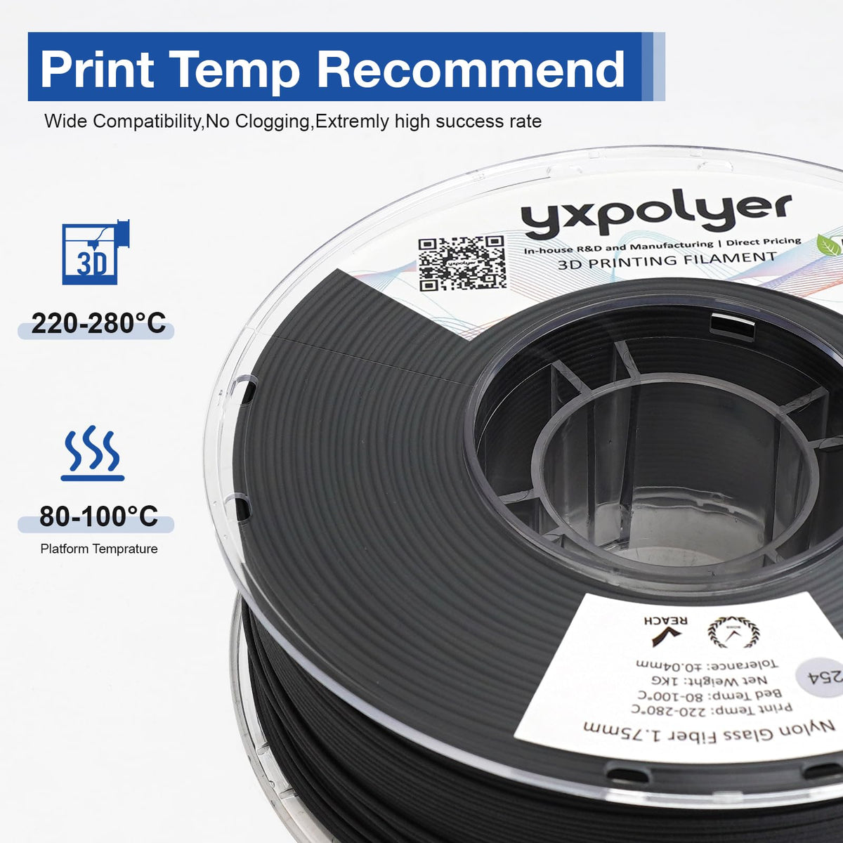 Nylon Glass Filled Filament Black Nylon Glass Fiber 3D Printer Filament Pa6-Gf 1Kg With Reusable Pc Spool