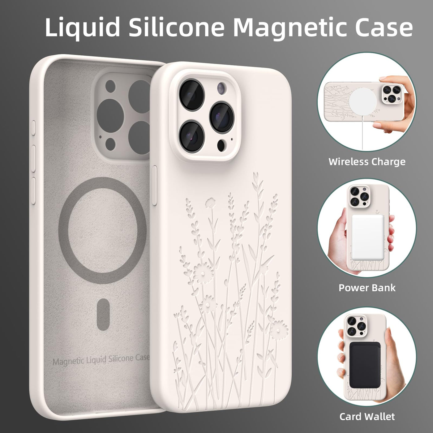 Oaoa Magnetic Case Compatible With Iphone 15 Pro Case 6.1Inch,Soft Liquid Silicone Engraved Case Compatible With Magsafe With Mi