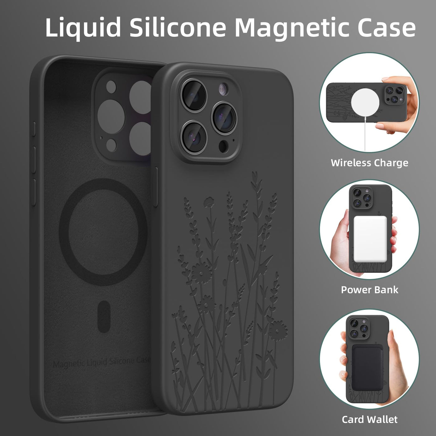 Oaoa Magnetic Silicone Case Compatible With Iphone 15 Pro Case, Built In Magnets, Compatible With Magsafe, Slim Engraved Liquid