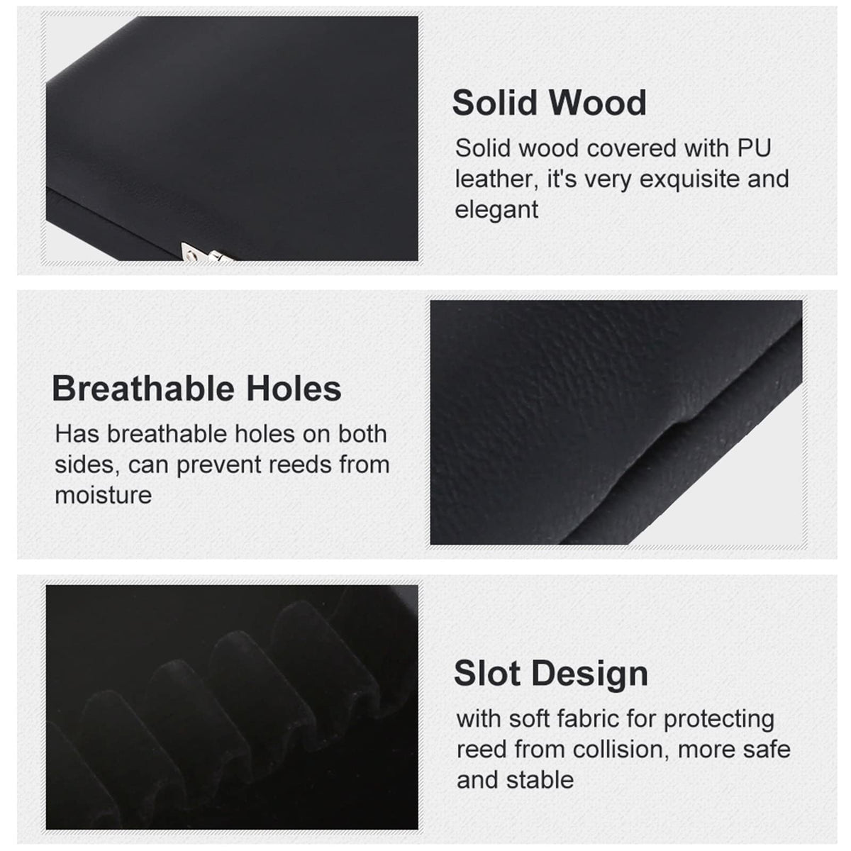 Features: High Quality Wooden Material, Solid And Durable To Use. Slot Design In Inner Surface With Soft Fabric For Protecting Reed From Collision, More Safe And Stable. Has Breathable Holes On Both Sides, Can Prevent Reeds From Moisture. Compact Size And Light Weight, Convenient To Store Oboe Reeds And Easy To Carry. Solid Wood Covered With Pu Leather, It'S Very Exquisite And Elegant. Spec: Condition: 100% Brand New Material: Wood + Pu Leather Color: Black Type: #1, #2, #3 (Optional) Size: Approx.&Nbsp; #1: 115 X 95 X 20Mm / 4.52 X 3.74 X 0.78Inch #2: 135 X 95 X 20Mm / 5.3 X 3.74 X 0.78Inch #3: 215 X 95 X 20Mm / 8.46 X 3.74 X 0.78Inch Weight: Approx. 77-142G Package Included: 1 X Reed Case (Reeds Are Not Included) Notice: Please Allow Slight Deviation For The Color And Measurement. Thanks For Your Understanding.