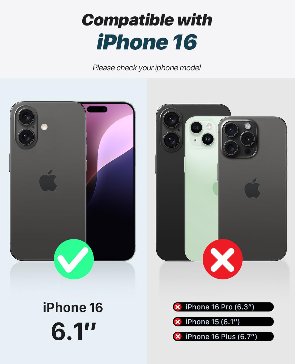 Q: Is the OCASE for iPhone 16 compatible with other iPhone models?A: No, the OCASE for iPhone 16 is exclusively designed for the iPhone 16 with a 6.1-inch display. Please check your phone's model in Settings to ensure compatibility before purchasing.