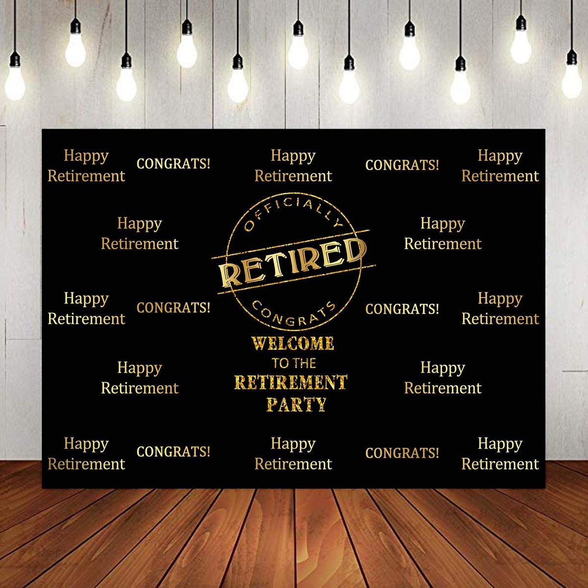 Officially Retired Black Golden Banner Backdrop For Photography, 9X6Ft, Happy Retirement Party Background, Photo Booth Studio Pr