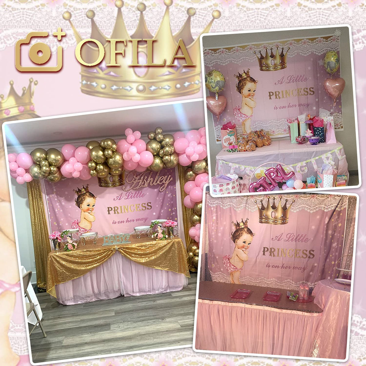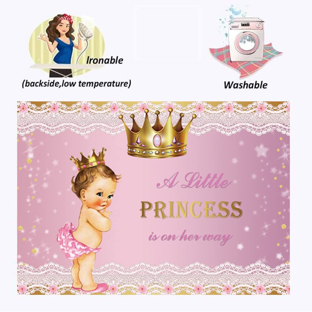 Ofila Princess Baby Shower Decoration Backdrop 7X5Ft Gold Crown Lace Pink A Little Princess Is On The Way Photography Background