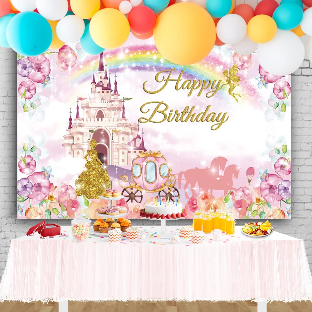 Ofila Princess Castle Birthday Backdrop 7X5Ft Royal Castle Carriage Photography Background Banner Princess Birthday Party Decora