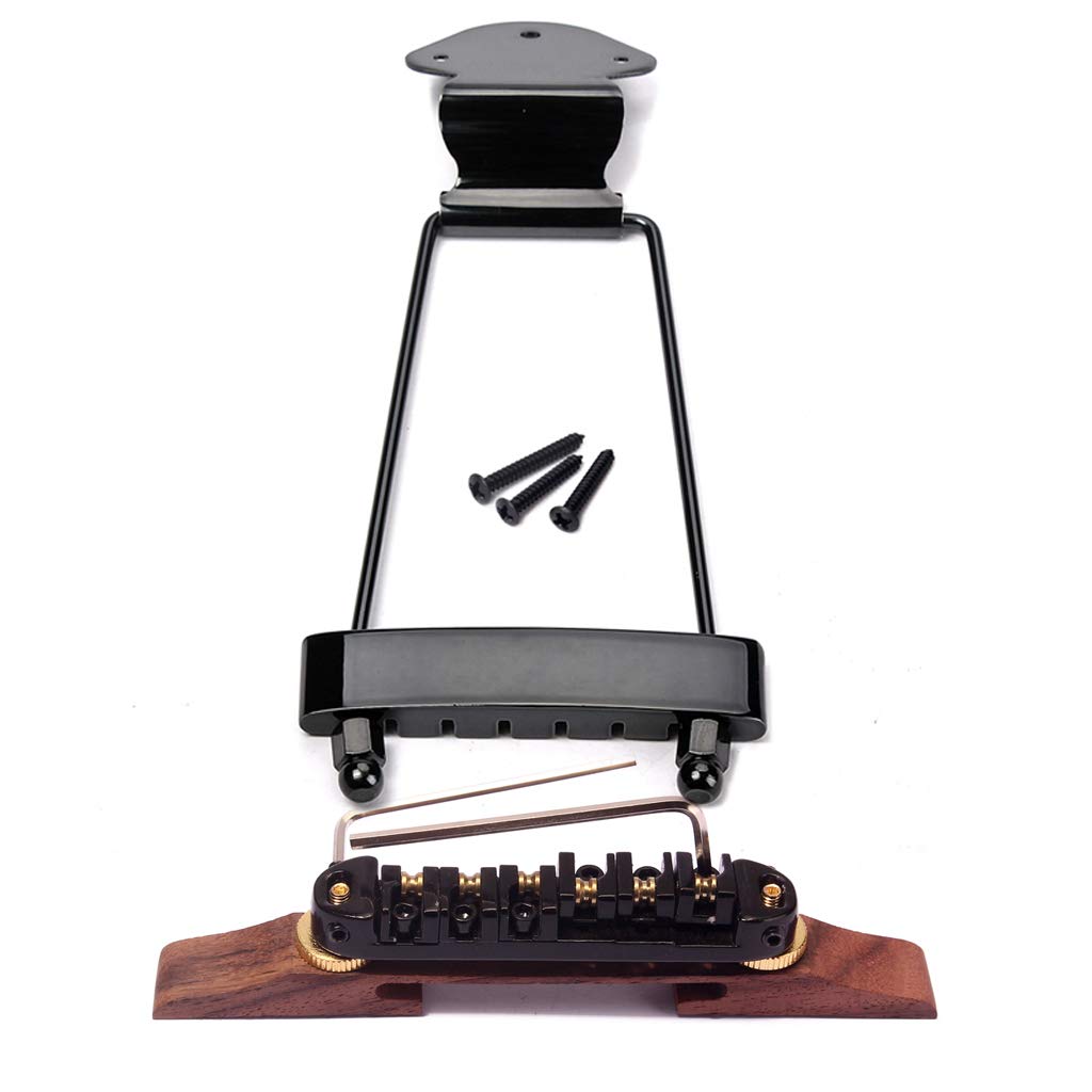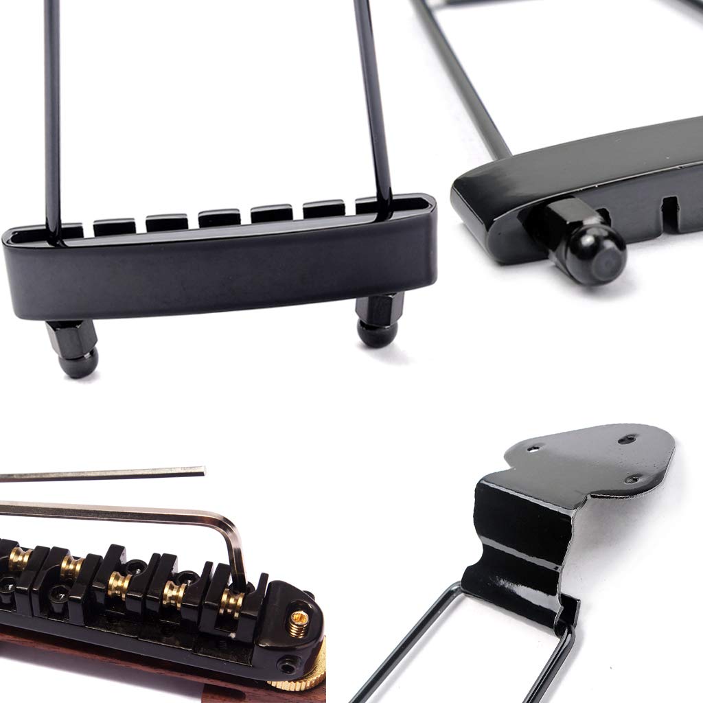 Ogdni 6 String Guitar Trapeze Tailpiece Bridge And Roller Tune O Matic Saddle Bridge For Jazz Archtop Guitar Replacement (Black)
