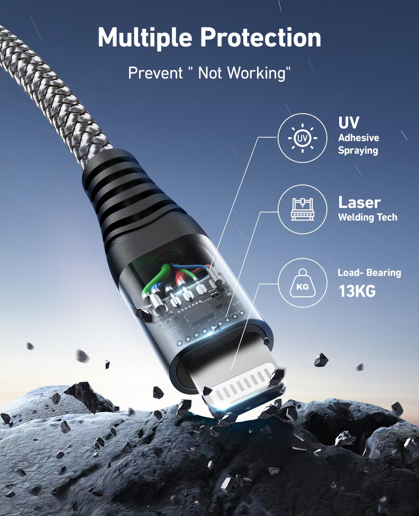 Ohbox Lightning Cable 3Ft 3Pack Iphone Charger Cable Nylon Braided Iphone Fast Charging Cord Usb A To Lightning Cable Compatible With Iphone 14/13/12/11/Pro/Max/Mini/X/Plus/8/7/6/5S/Se/Plus/Ipad