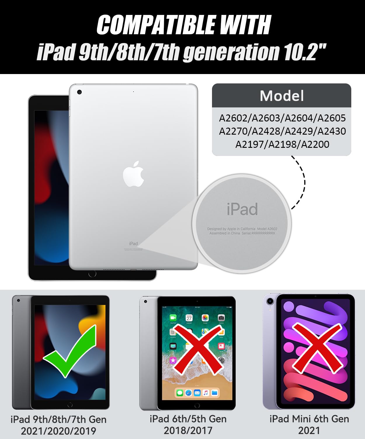 1. Compatible Model: The Okp 10.2 Inch Protective Case Is Only Fit Ipad 9Th/8Th/7Th Generation (2021/2020/2019 Release) ( Model: A2197/ A2198/ A2200/A2270/A2428/A2429/A2430/A2602/A2603/A2604/A2605). Not Compatible With Any Other Devices. Please Check Back Bottom Of Your Ipad To Find The Model Number.) 2. Full Body Protection: The Okp Ipad 9Th 8Th 7Th Generation Case Is Made Of Hard Pc And Durable Shockproof Silicone, 3-In-1 Layer Full Body Protection Construction Which Is Protects Your Ipad From Scratches , Accidental Drops, Bumps And Impacts. (Attention: Without Built-In Screen Protector) 3. Sturdy Functional Kickstand: The Okp Ipad 9 8 7 Gen Case Has Design With Built-In Kickstand Provide Two Different Angles (Viewing & Typing Mode), Which For Gives You The Convenience To Watch Videos And Movies Hands-Free With Desired Comfort And Stability. 4. Precise Cutouts: Precisely Engineered To Fit Your Ipad Perfectly And Allows Easy Access To All Buttons, Controls And Ports Without Having To Remove The Case, Exquisite Design Make Your Ipad More Fashion And Safe. 5. Professional Support Team: We Provide A 180 Days Warranty For This Ipad Case. If You Have Any Questions Or Anything You Feel Unsatisfied, Please Feel Free To Contact Us. We Sure All The Question Can Be Solved Properly.