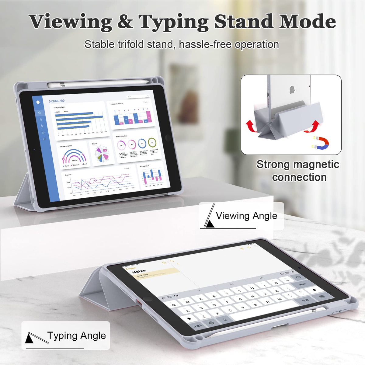 ? Perfect Compatibility: The Ipad 10.2 Inch Case Designed For Ipad 9Th/ 8Th/ 7Th Generation (2021/2020/2019) ( Model Number: A2197/ A2198/ A2200/A2270/A2428/A2429/A2430/A2602/A2603/A2604/A2605). Not Compatible With Any Other Devices. (Attention: Please Tear Off The Inner And Outer Protective Films Of The Clear Hard Pc Backshell Before Installation) ? Adjustable Angles: The Ipad 9Th Generation Case Has Trifold Stand Design With Dual Standing Provide Two Positions For Comfortable Viewing Or Typing Experiences, Meet Your Different Needs. ? Multiple Function: This Ipad 8Th Generation Case Provides Auto Sleep/ Wake Function That Helps Preserve Battery Lifes. Built-In Pencil Holder, Conveniently Place And Remove Your Apple 1St Pencil, Prevent Losing Or Breaking Your Pencil And You Can Use It Whenever You Want. (Please Note: Pencil Is Not Included) ? Full Protection: The Ipad 7Th Generation Case Is Made Of High Quality Durable Pu Leather And Soft Tpu Frame, Which Is Protects Your Ipad From Shocks, Drops. Hard Crystal Clear Pc Back Provides Strong Support And The Place For Diy. Precise Cutouts Allow Access To All Controls And Features (Cameras, Speaker, Ports And Buttons) ? Slim And Stylish: The Okp 10.2 Cases Are Available In A Variety Of Stylish Colors, Slim And Lightweight Design With Excellent Craftsmanship And Feel. It Can Be Put To Use In Many Settings, Take It To School/Gym/Picnic/Camping/Outdoor Etc, Great Value, Wonderful Gift Choice For Family And Friends.