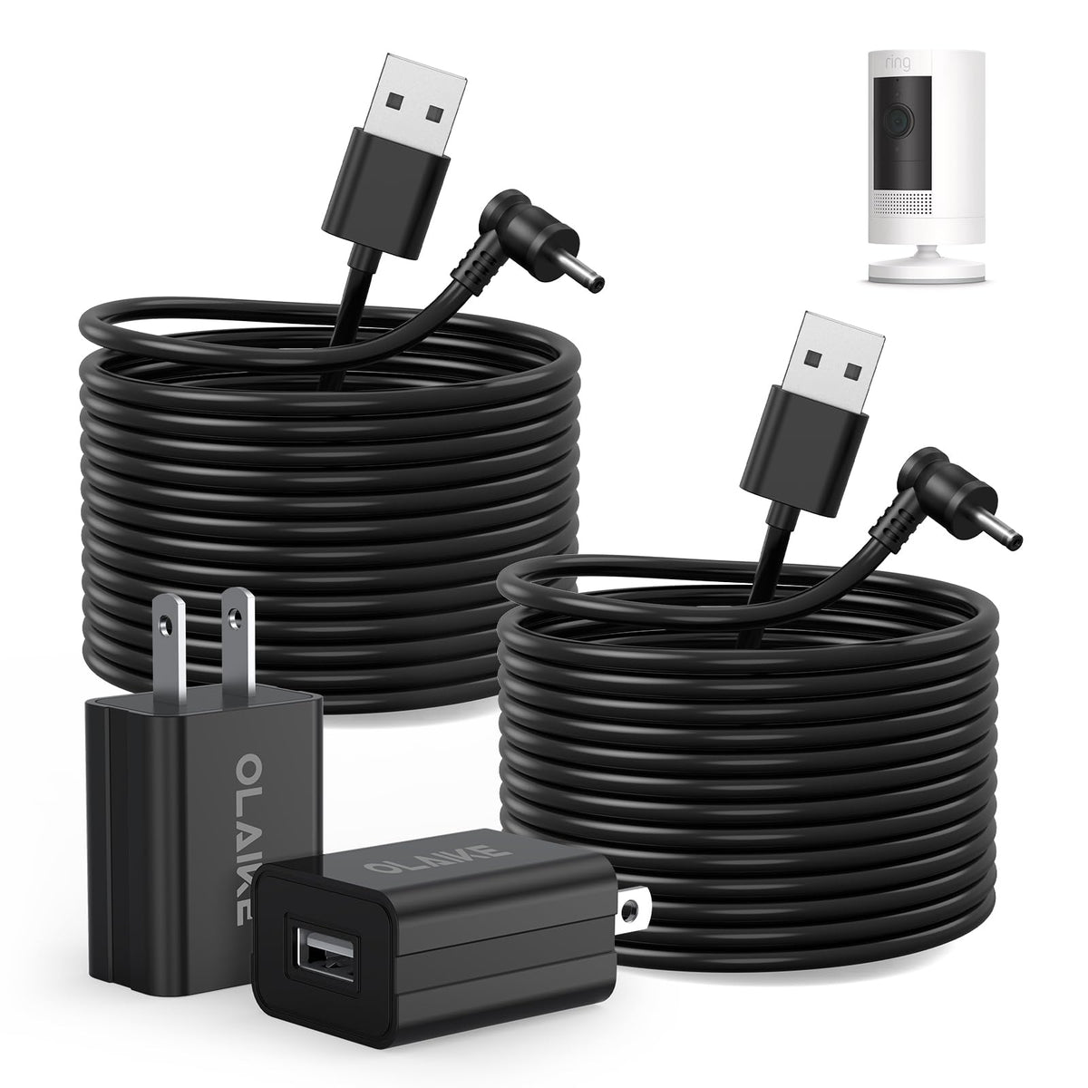 Olaike (2 Pack 8M/26Ft Charge Cable For Ring Stick Up Cam Battery/Plug In & Ring Spotlight Cam Battery, Weatherproof Power Adapt