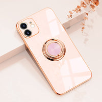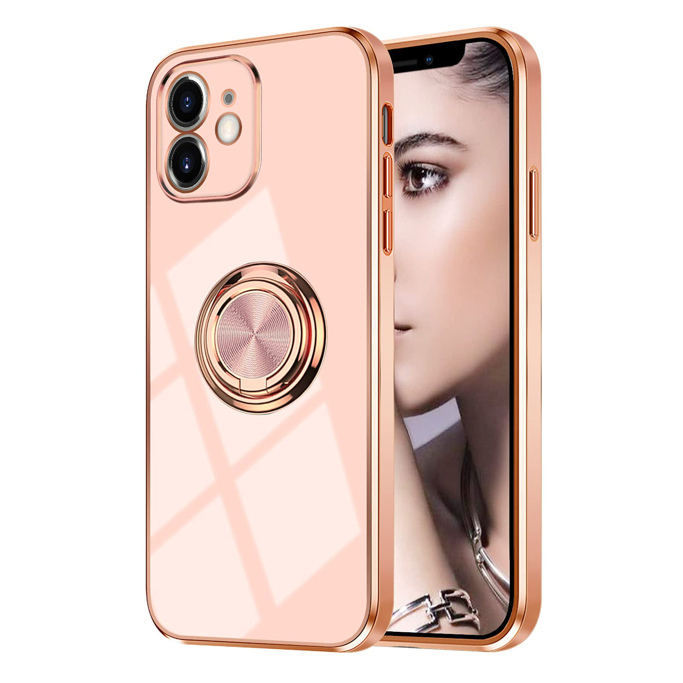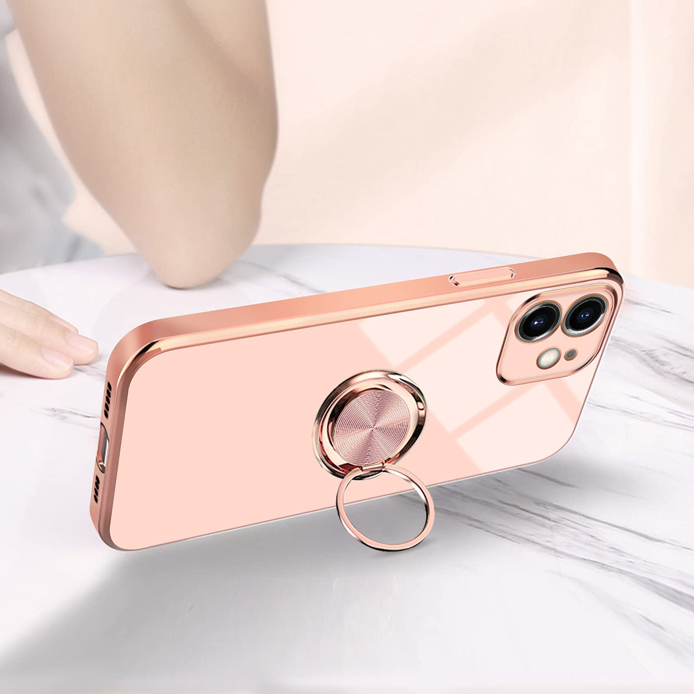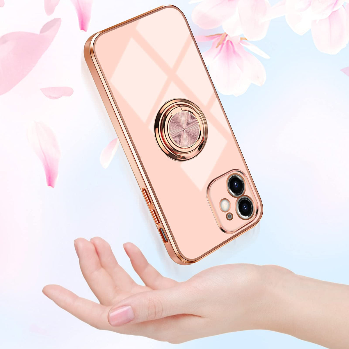 Omorro For Pink Iphone 11 Case For Women Ring Holder, Built In 360 Tpu Rotation Kickstand Rings Cases With Stand Glitter Plating