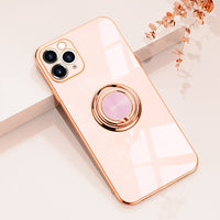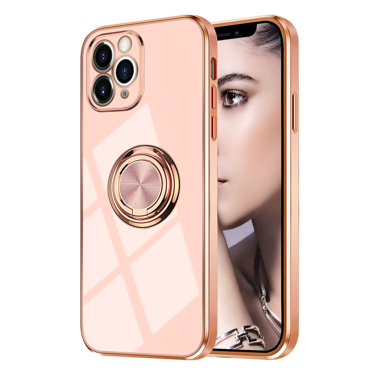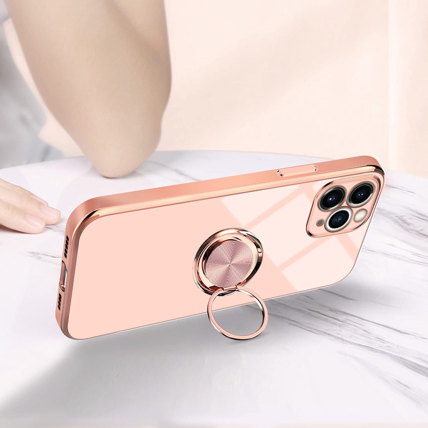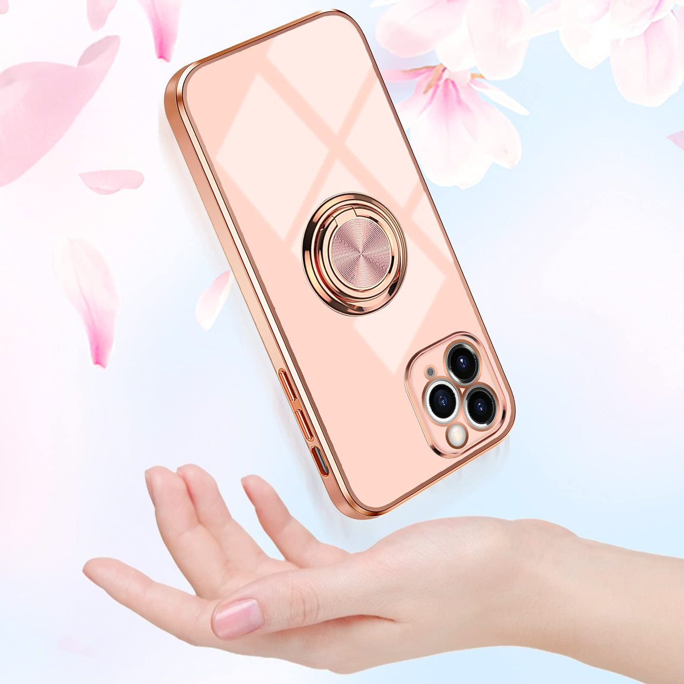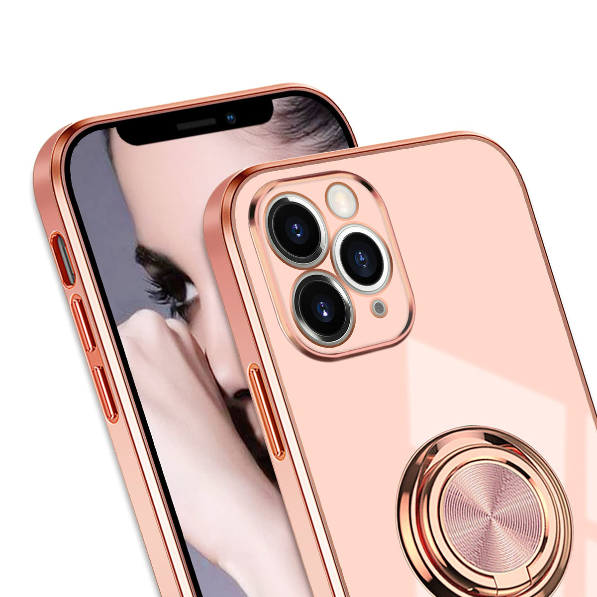 Omorro For Pink Iphone 11 Pro Case With Ring Holder, Built In Rotation Ring Kickstand Cover Case With Luxury Shiny Plating Rose