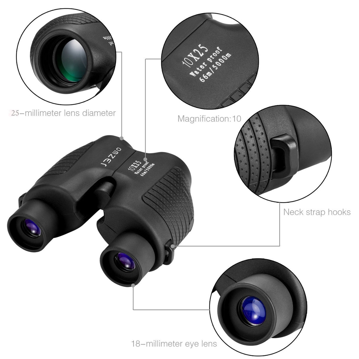 Omzer 10X25 Automatic Fixed Focus Binocular With Low Light Night Vision,High Power Waterproof Compact Auto Focus Binoculars Fit