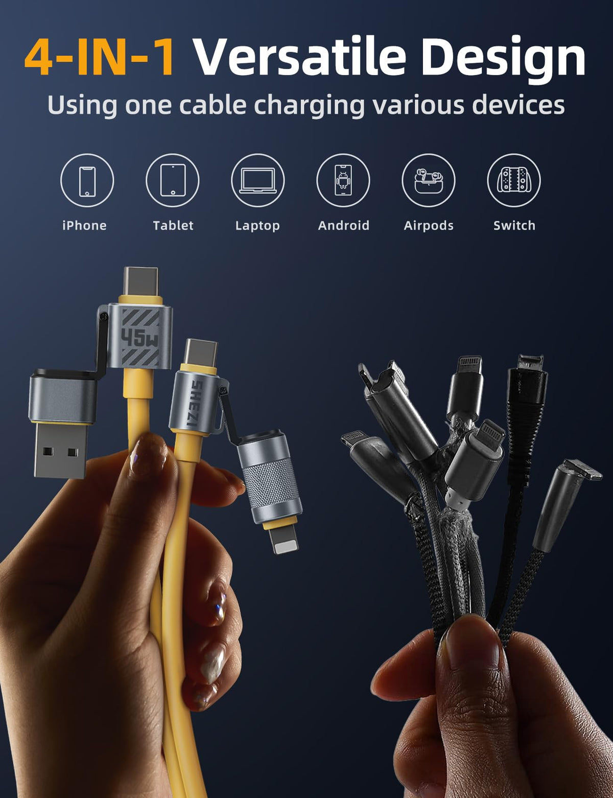 Jixivor Usb C Cable Lightning Cable [Shezi-Style] 4 In 1 100W Silicone Iphone 15 Cable Charge Any Of Your Devices With The 4 In 1 Charging Cable, It Combines 4 Ports1??Usb A To Usb C2??Usb A To L3??Usb C To L4??Usb C To Usb C, One Cable For All! L-Port: With Charging And Data Transmission Functions. Compatible With Iphone 15/ 15 Pro/ 15 Plus/ 15 Pro Max/ 14/ 14 Pro/ 14 Plus/ 14 Pro Max/ 13/ 13 Pro/ 13 Mini/ 13 Pro Max/ 12/ 12 Pro/ 12 Mini/ 12 Pro Max/ 11/ 11 Pro/ 11 Pro Max/ Xr/ X/ Xs/ Xs Max/ Iphone 8/ 8 Plus. Usb C-Port: Have Charge Function. Compatible With Samsung Galaxy S22/ S22+/ S22 Ultra/ S21/ S20/ S20+ (Plus)/ S20 Ultra/ S10E/ S10/ S10+ (Plus)/ S9/ S9+ (Plus)/ S8/ S8+ (Plus)/ S7 Edge/ S6 Edge /Note 20/ Note 20 5G/ Note 20 Ultra 5G/ Note 10/ Note 10+ (Plus)/ Note 9/ Note 8/ Note 7/ Note 5. Usb A-Port: Have Charge Function. Compatible With Most Android And Windows Phones, Tablets And Many Other Devices Including/Htc/Nokia/Lg/Sony/Bluetooth/Speakers/Headphone/Earphone/Mp4/Mp3/Ps/Gps Device. Designed For Cars: 100% Support Carplay & Android Auto. Anti-Tangle Design Prevents Cables From Falling To The Ground And Affecting Driving Safety. What You Will Get:4 In 1 Usb Charger Cables (Combo L-Port/ Type C*2/ Usb A Ports).