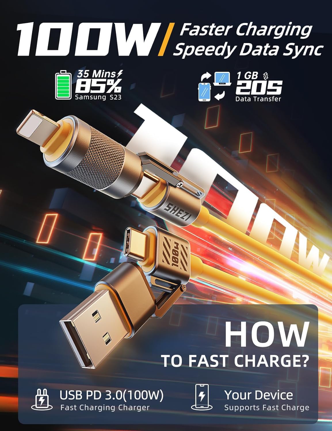 [One Is Enough] 4In1 Usb C To Lightning Cable,100W [High Speed Charging&Fast Data Transfer][Carplay&Android Auto Support] Multi