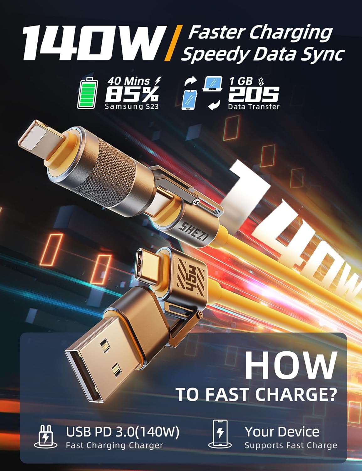 [One Is Enough] 4In1 Usb C To Lightning Cable,140W [High Speed Charging&Fast Data Transfer][Carplay&Android Auto Support] Multi